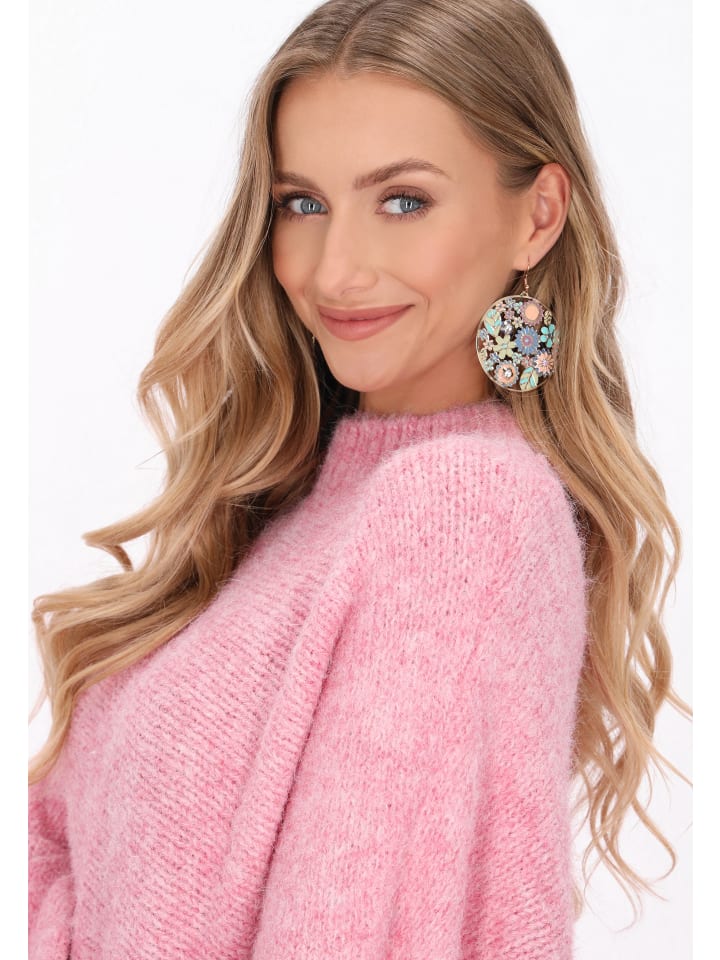 - Свободный свитер с круглым вырезом горловины и длинными широкими рукавами
