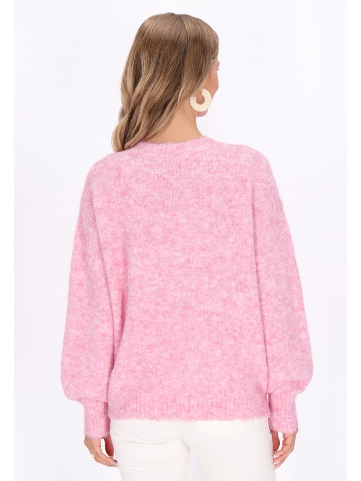 - Свободный свитер с вырезом-замочной скважиной и длинными рукавами