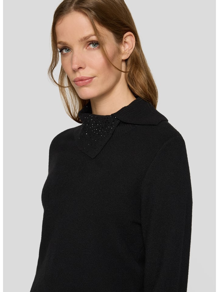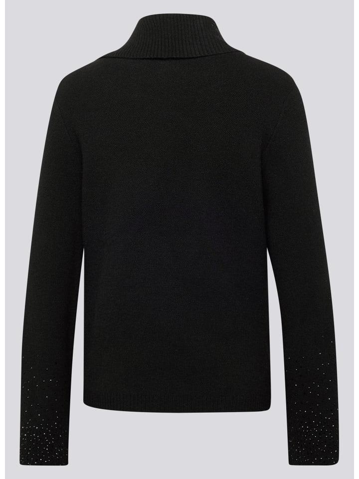 - Свитер тонкой вязки с декоративным воротником-стойкой и отделкой стразами