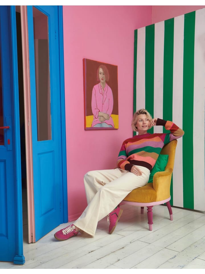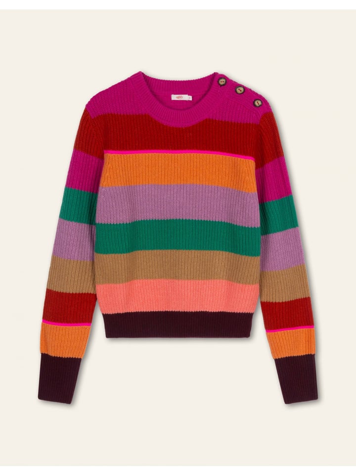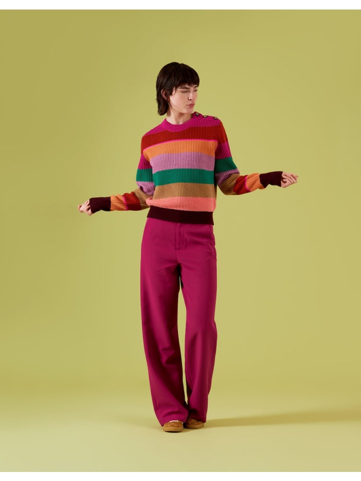 Этот жизнерадостный свитер удивляет красивыми деталями, такими как пуговицы на одном плече, тонкая контрастная полоска и удлиненные узкие манжеты, придающие ему элегантность. Совет: чтобы сохранить форму и красоту вашего шерстяного гардероба, рекомендуем хранить этот свитер в сложенном виде в шкафу, а не вешать. - Классический крой - Сделано в Румынии - Итальянская пряжа, ответственное производство шерсти, стандартная шерсть, переработанный кашемир - Рост модели: 178 см / 5 футов 10 дюймов, размер S