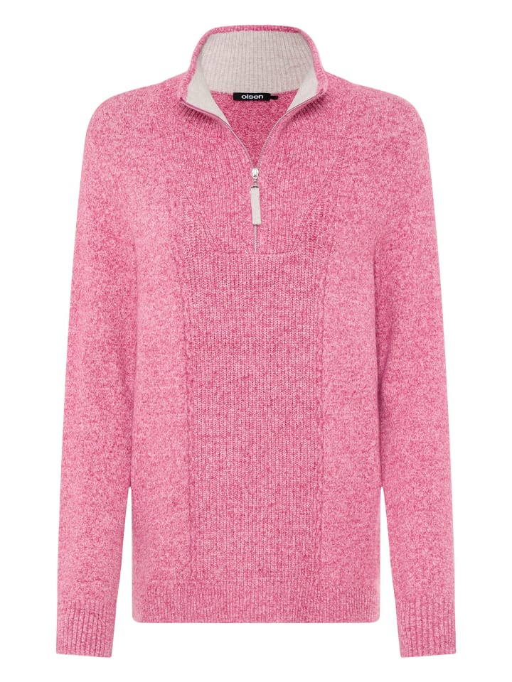 Этот свитер Troyer сочетает в себе спортивный стиль и стильную простоту. Прямой крой Olsen «Henny» дополнен классическим воротником Troyer с короткой молнией. Воротник-стойка можно носить как расстегнутым, так и застегнутым, что придает свитеру современный и функциональный вид. Длинные рукава и аккуратный подол обеспечивают четкий силуэт. Мягкая, струящаяся вискозная смесь приятна к телу - идеально подходит для повседневной носки или для создания непринужденного офисного образа. Бонус: эта модель содержит вискозу LENZING ECOVERO, полученную из контролируемых источников древесины. LENZING и ECOVERO - бренды Lenzing AG. Длина около 60 см.