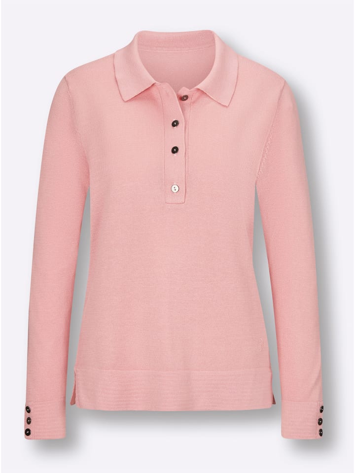 Хлопковый свитер, тщательно и точно связанный по фигуре. Изысканный хлопок придает ему легкий блеск и невероятно мягкий на ощупь. С воротником-поло и планкой на пуговицах. Широкие манжеты с тональными полосками из слегка мерцающей пряжи. Вышитый логотип по подолу. Поддерживает инициативу «Сделано в Африке» (Collo made in Africa).
