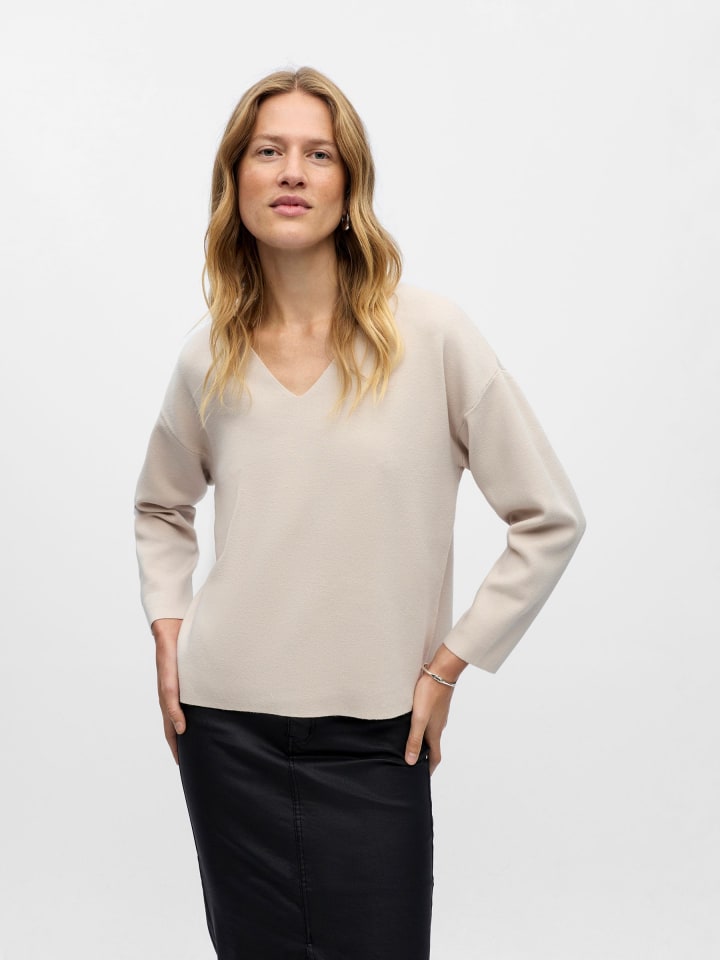 - Вязаный свитер с V-образным вырезом