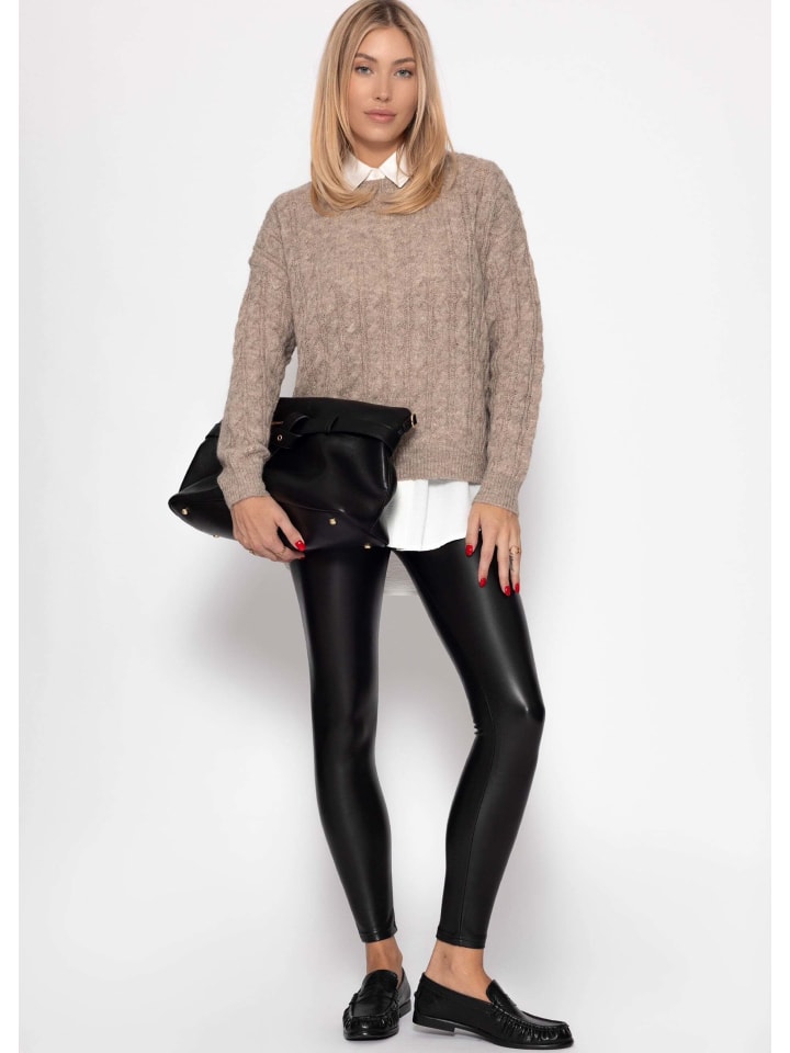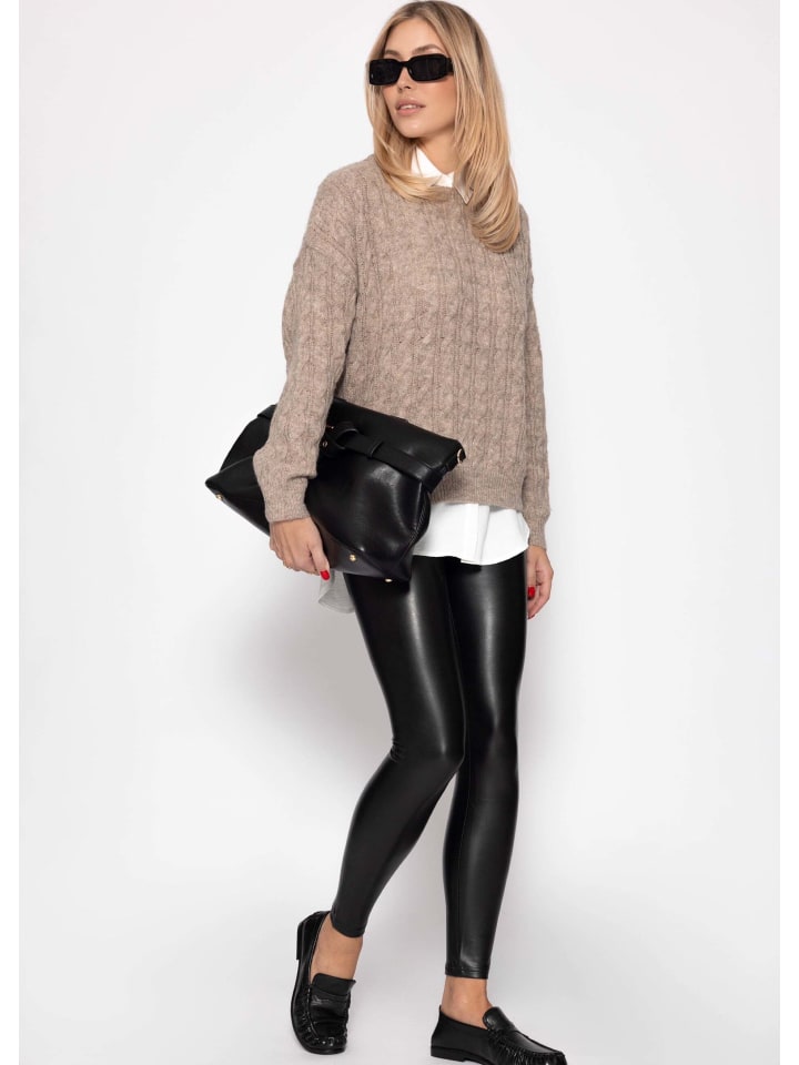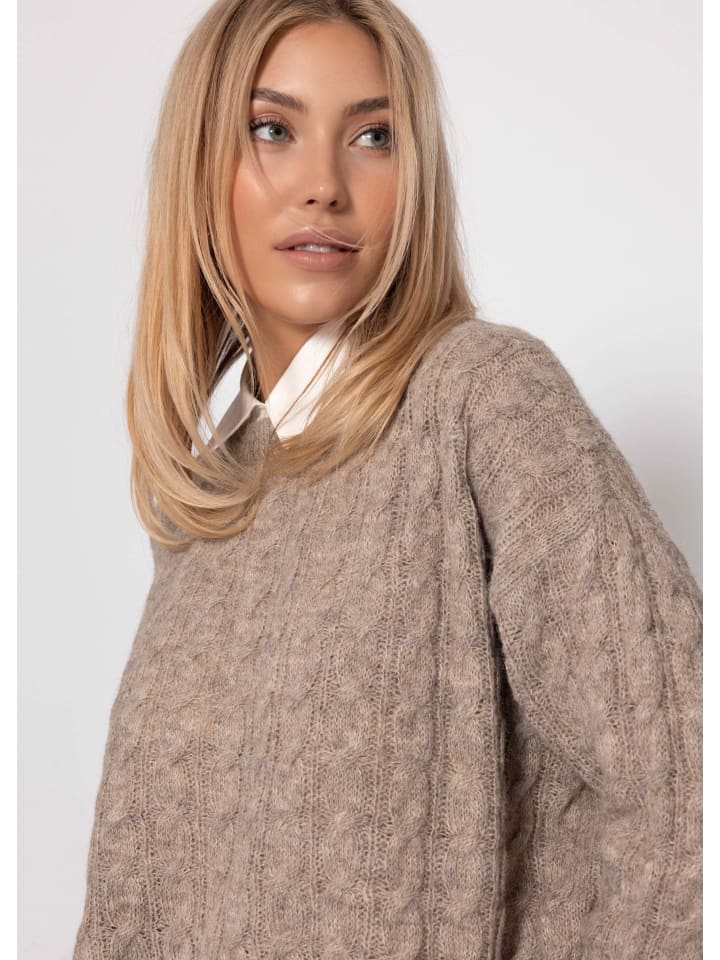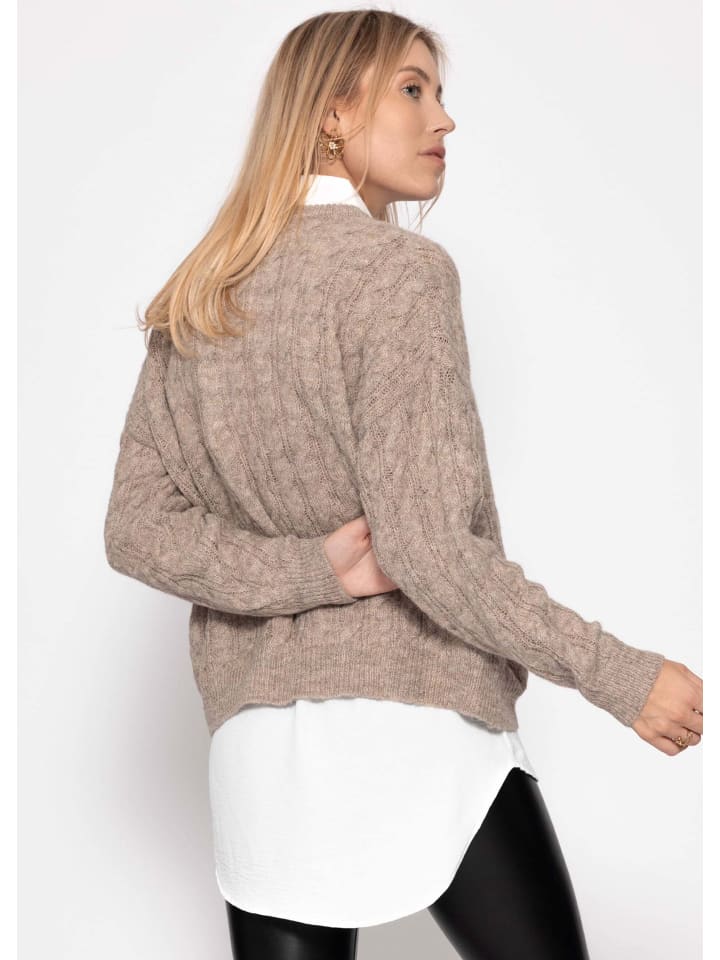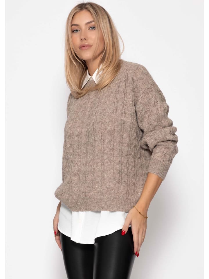 Серо-коричневый свитер с косичной вязкой SASSYCLASSY