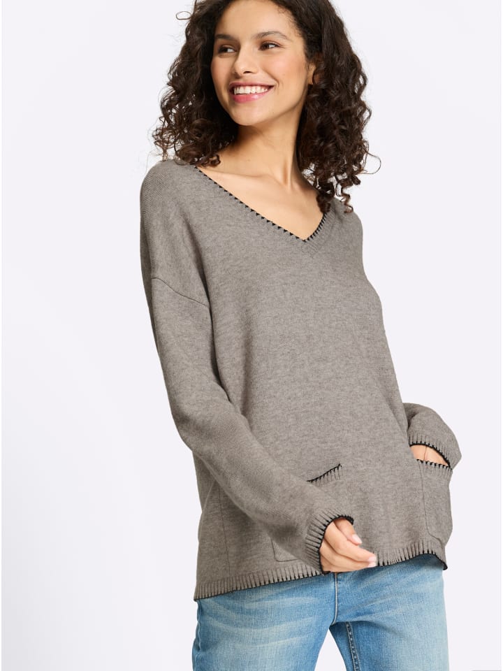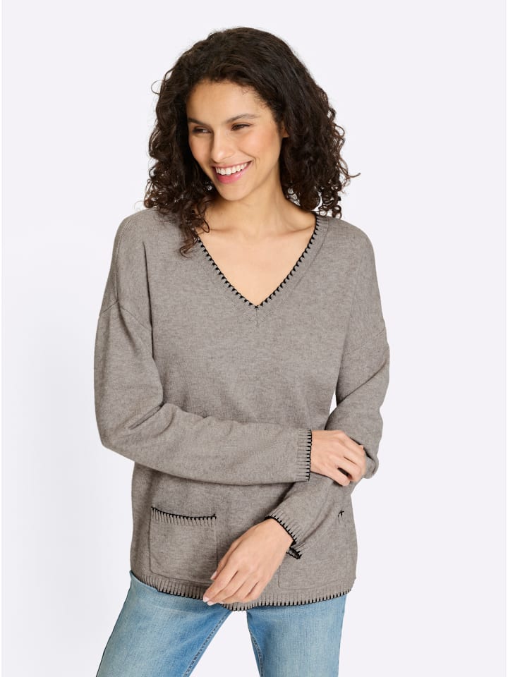 Свитер цвета серо-коричневого меланжа Heine