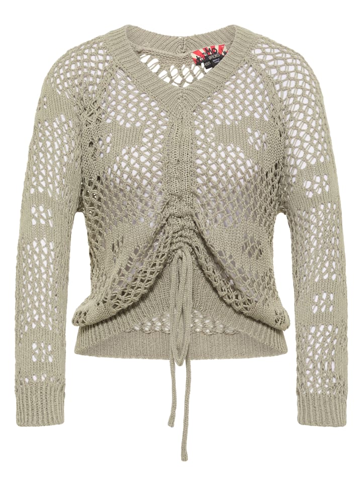 Этот свитер ручной работы от myMo ROCKS станет стильным дополнением к вашему гардеробу. Он изготовлен из мягкого хлопково-акрилового макраме и завязывается шнурком по центру для свободной посадки и регулируемой длины. Воздушные петли красиво драпируются и дополнены ребристыми манжетами и V-образным вырезом. Этот свитер идеально сочетается с массивными ботинками для создания образа в стиле бохо в рок-н-ролльском стиле.
