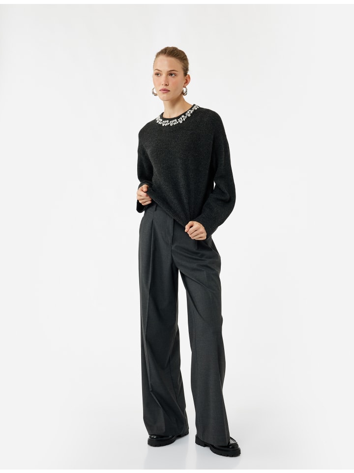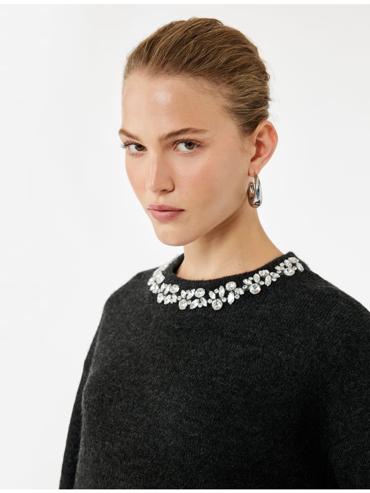 Этот элегантный вязаный свитер с круглым вырезом украшен сверкающей отделкой. Длинные рукава и свободный крой обеспечат максимальный комфорт и тепло в прохладные дни. Стильный дизайн позволяет легко сочетать его с различными нарядами, что делает его идеальным вариантом для повседневной носки или офиса.