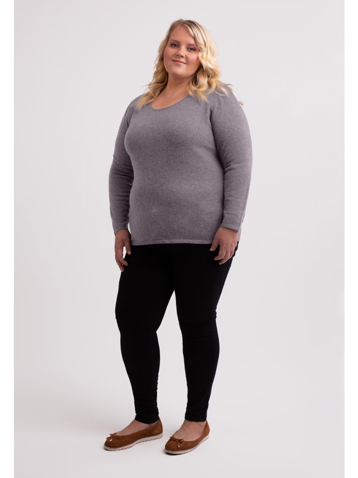 Свитер с круглым вырезом серого цвета CASH-MERE.CH