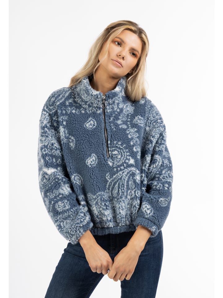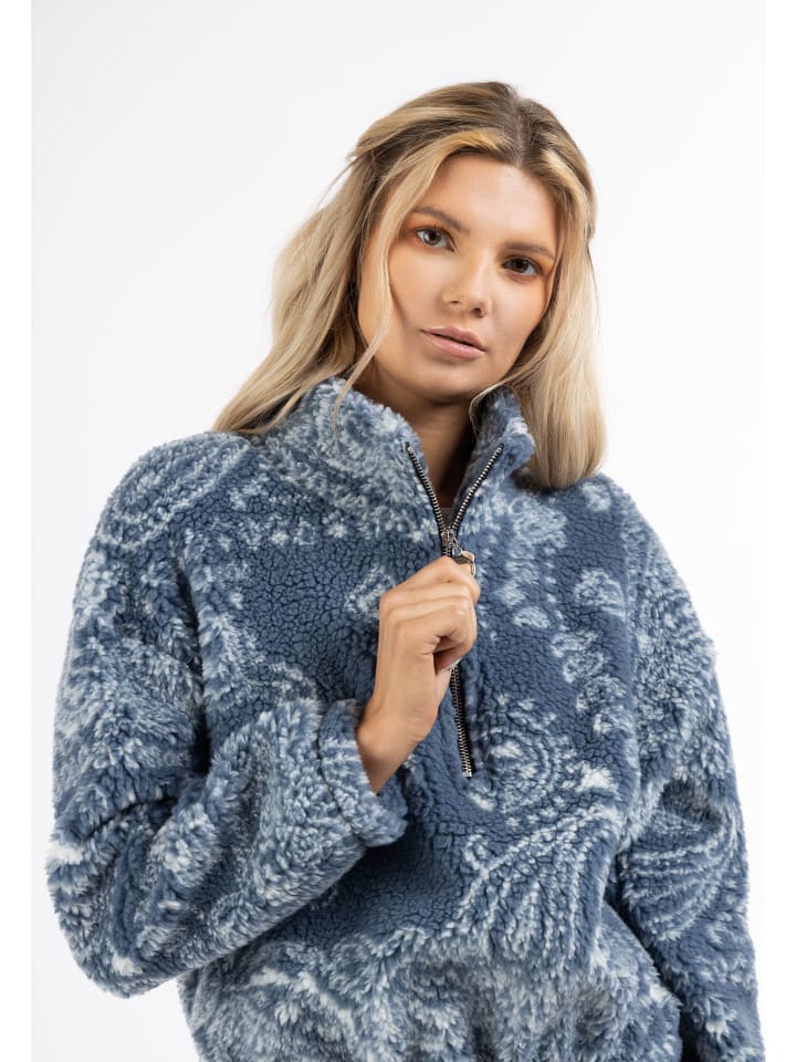 Этот мягкий плюшевый свитер, произведенный в Италии, с воротником-стойкой и застежкой-молнией станет идеальным спутником для холодных зимних дней. Свитер IZIA отличается свободным свободным кроем и модным узором пейсли.