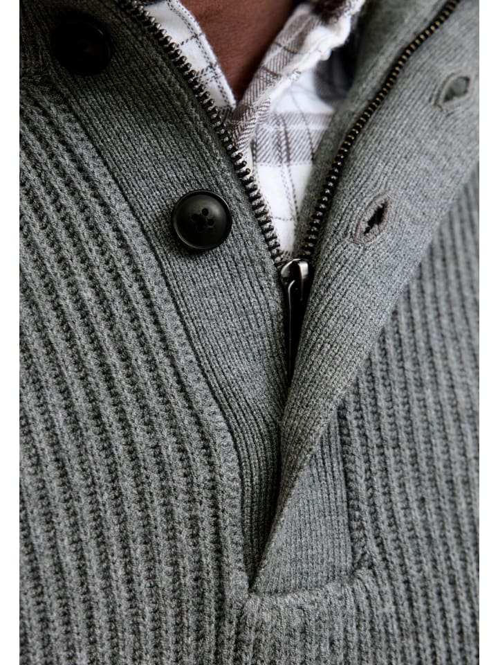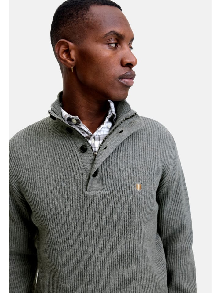 Свитер, идеально сочетающий в себе стиль и комфорт - наш мужской трикотажный свитер станет выигрышным выбором в любой ситуации. Классический крой обеспечивает удобную посадку и классический силуэт. Изготовленный из высококачественной рубчатой вязки, он обеспечивает как структуру, так и гибкость. Высокий воротник с застежкой-молнией и планкой на пуговицах добавляет отличительный штрих. Небольшая вышивка на груди добавляет изящные акценты. Мягкий материал приятен на ощупь. Идеально подходит для прохладных дней, офиса или отдыха. Непревзойденный комфорт сочетается с мужской элегантностью. Этот свитер универсален и всегда стильный. Незаменимая вещь для мужчин, которые ценят качество.