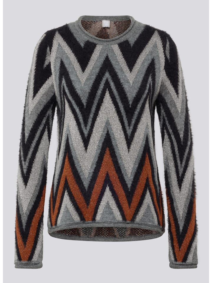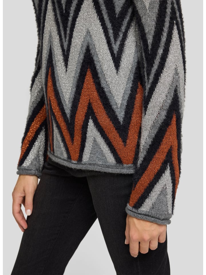 Привлекает внимание благодаря особым материалам: этот свитер впечатляет динамичным зигзагообразным узором в гармоничных тонах. Мягкая, тонкая вязка содержит волокна, не требующие особого ухода, и обеспечивает нежную текстуру и долговечность, а небольшое количество альпаки обеспечивает приятное тепло. Классический круглый вырез горловины и слегка приталенный крой делают этот свитер универсальным - как для повседневных, так и для элегантных случаев. Мягкая, тонкая вязка. В состав входит альпака для тепла. Зигзагообразный узор в тон. Круглый вырез горловины с отделкой в рубчик.