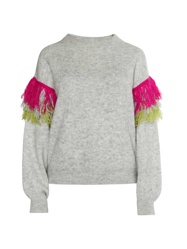 Мягкий свитер IZIA впечатляет своей формой и расцветкой. Свитер, выполненный из мягкой смесовой пряжи, украшен декоративными и красочными акцентами на рукавах, подчеркивающими непринужденный стиль бохо бренда. Ребристые манжеты завершают дизайн.