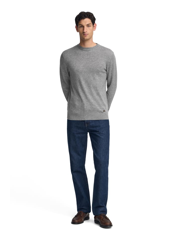 Мужской свитер прямого кроя с длинными рукавами, круглым вырезом. Изготовлен из 100% мериносовой шерсти. Деловой и элегантный предмет одежды, идеально подходящий для торжественных случаев.