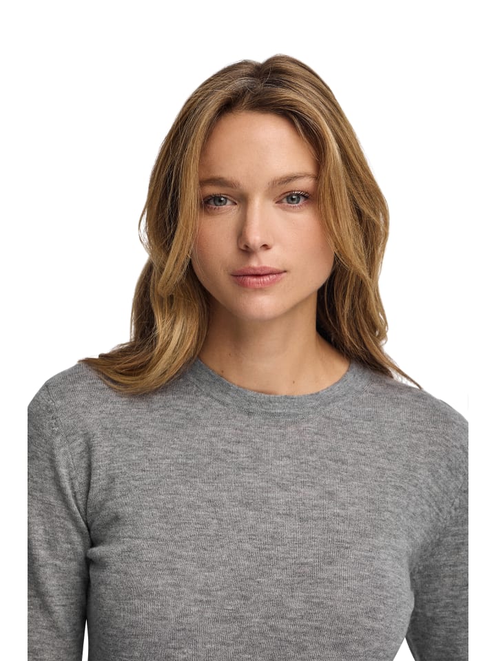 Этот женский облегающий свитер с круглым вырезом полностью изготовлен из мериносовой шерсти. Деловой и строгий предмет одежды идеально подходит для создания элегантных образов.