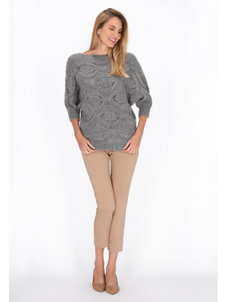 Повседневная элегантность на каждый день - свитер из коллекции Fashion Look. Этот вязаный свитер свободного кроя сочетает в себе комфорт и стиль в идеальных пропорциях. Широкий вырез «лодочка» деликатно обнажает линию плеч, а рукава 3/4 с кроем «летучая мышь» добавляют современный, модный штрих. Он отличается фактурным узором, который придает общему образу интересный эффект и легкость. Отличный выбор для повседневного образа - удобный, женственный и стильный. Прекрасно сочетается как с брюками строгих кроев, так и с юбками с высокой талией.