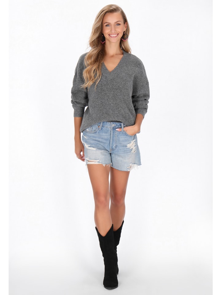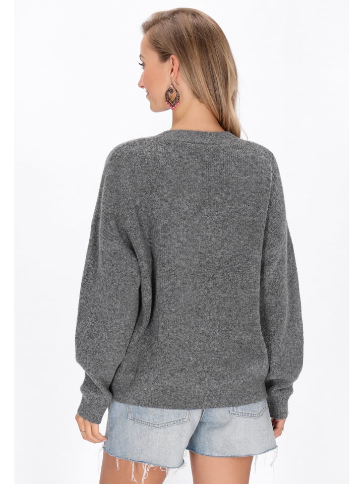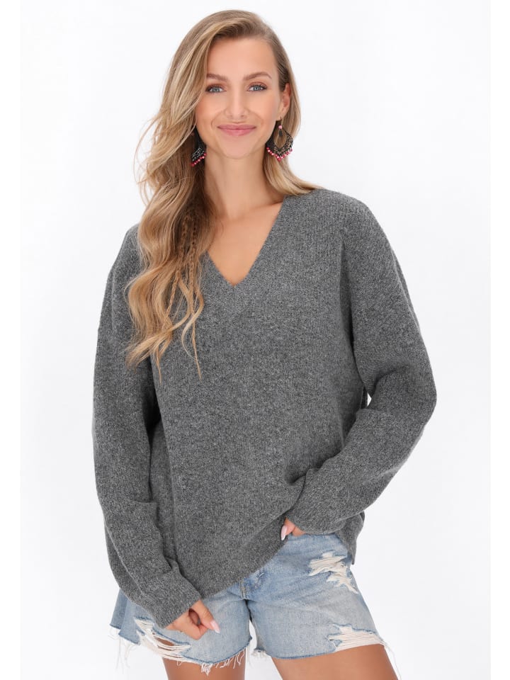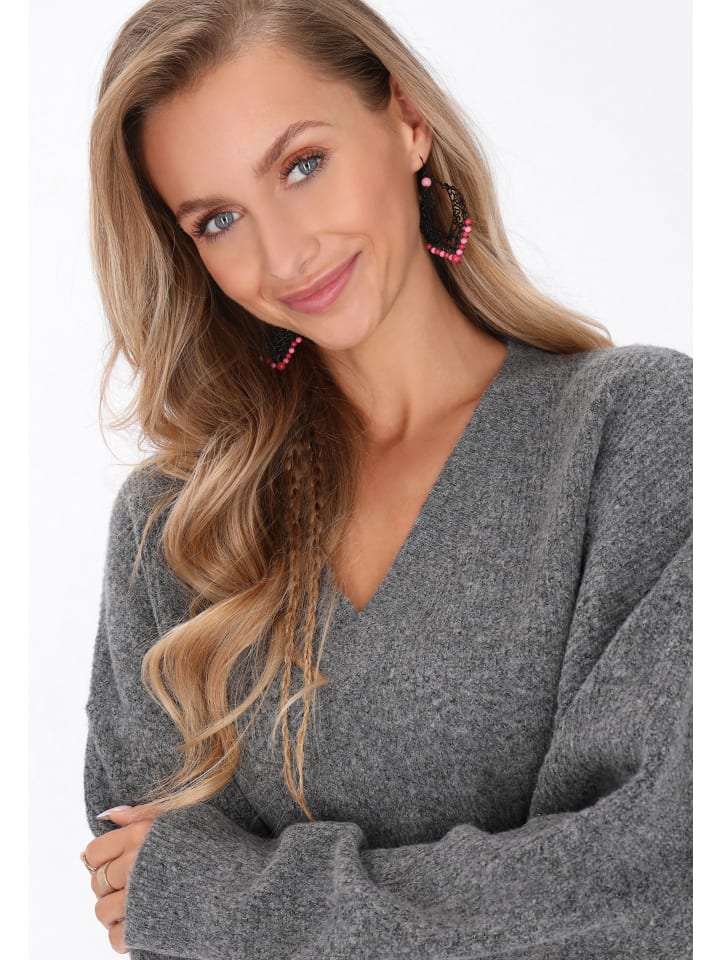 - Свободный свитер с V-образным вырезом и длинными рукавами
