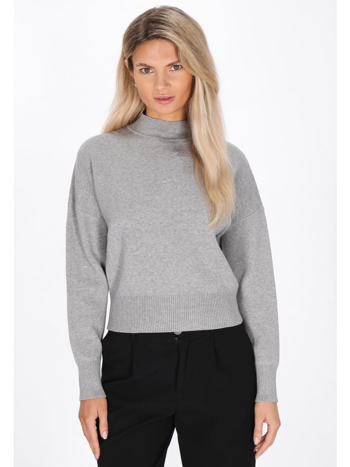 - Свободный свитер с воротником-стойкой и длинными рукавами