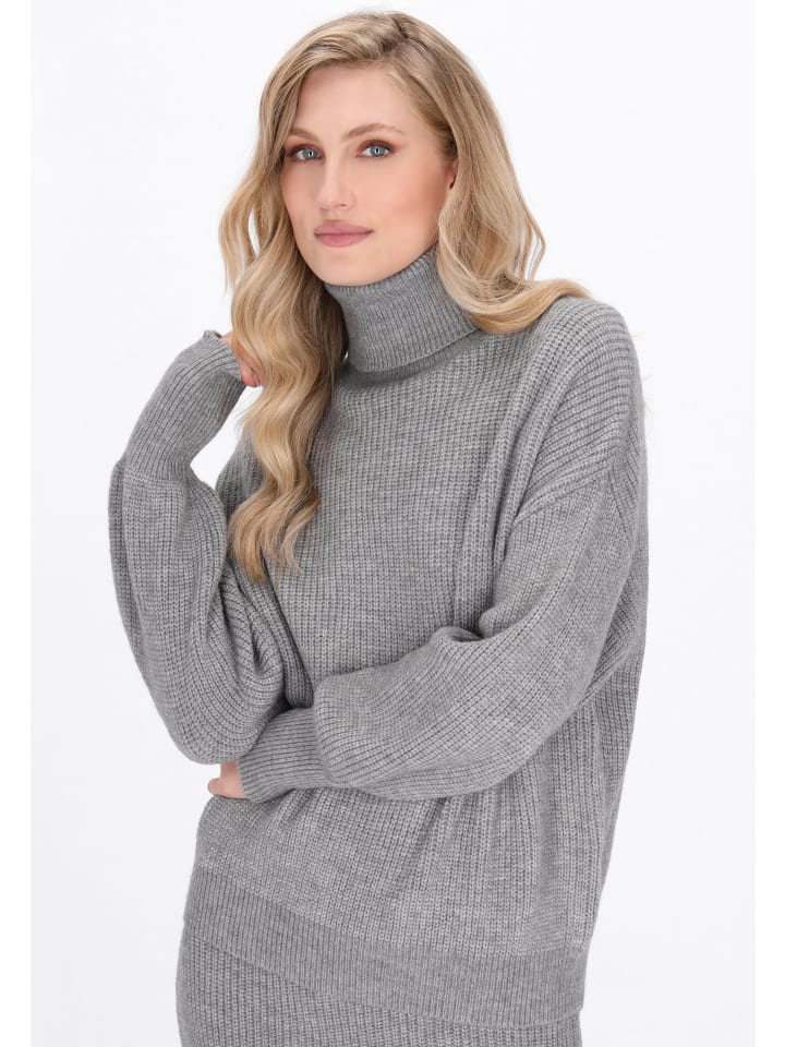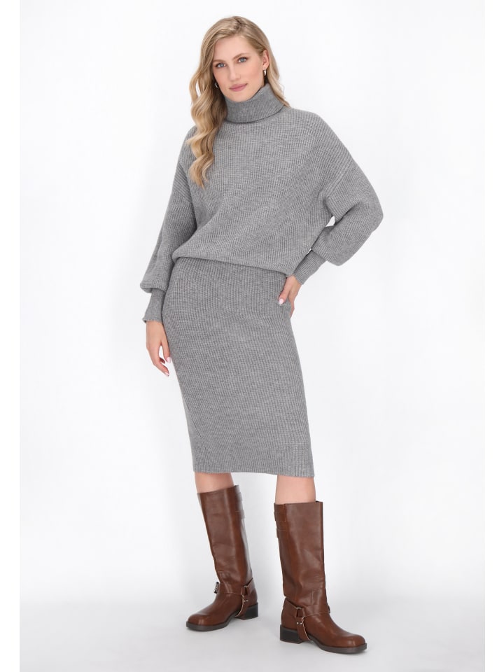 - Свободный свитер с водолазкой и длинными рукавами-бишоп