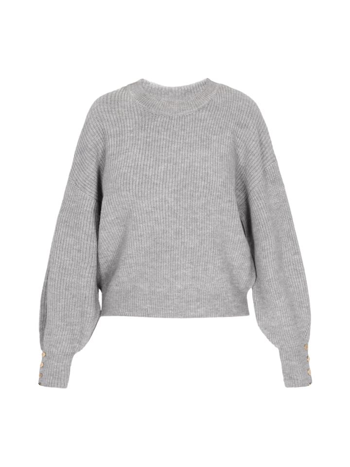 Свободный свитер с ребристой текстурой, круглым вырезом и спущенными плечами, создающий эффект oversize. Объемные рукава-бишоп сужаются к запястьям с декоративными пуговицами, а слегка укороченный подол добавляет современный штрих. Эта вневременная модель из нашей классической коллекции подчеркивает комфорт и стиль, идеально подходит для повседневной носки.