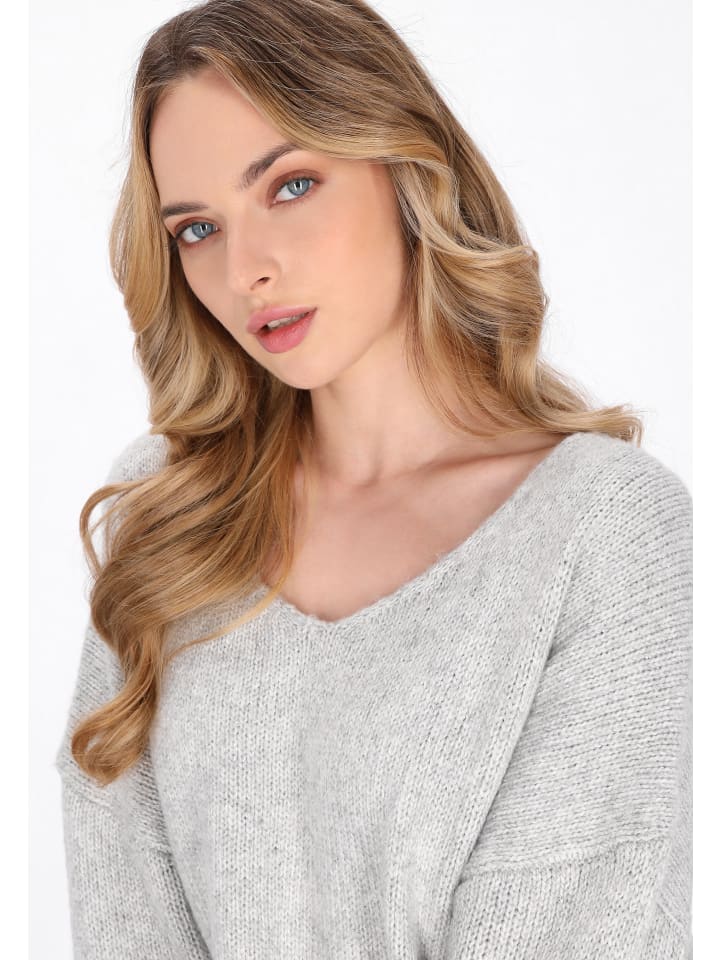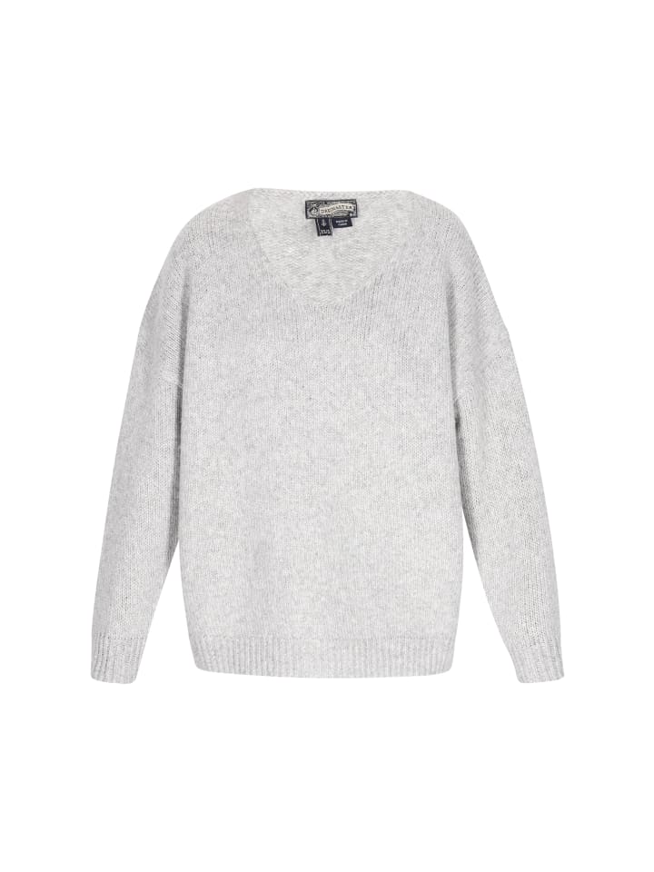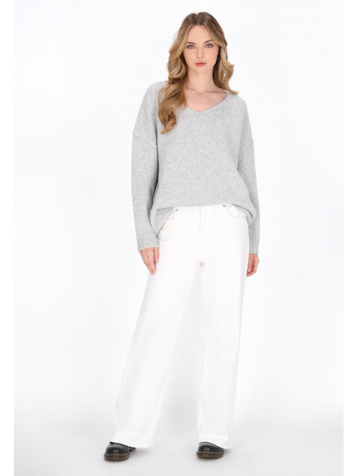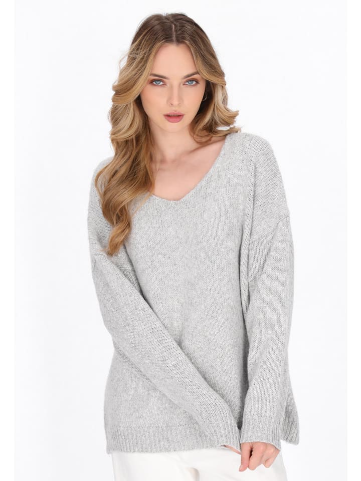 - Свободный свитер с V-образным вырезом и длинными рукавами