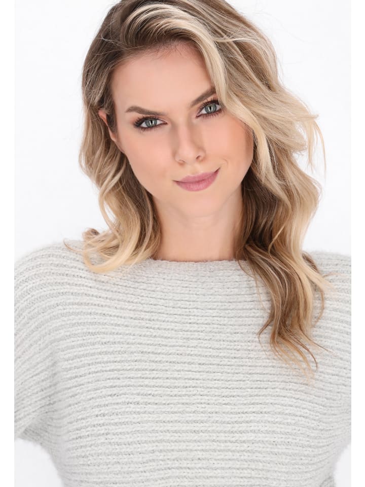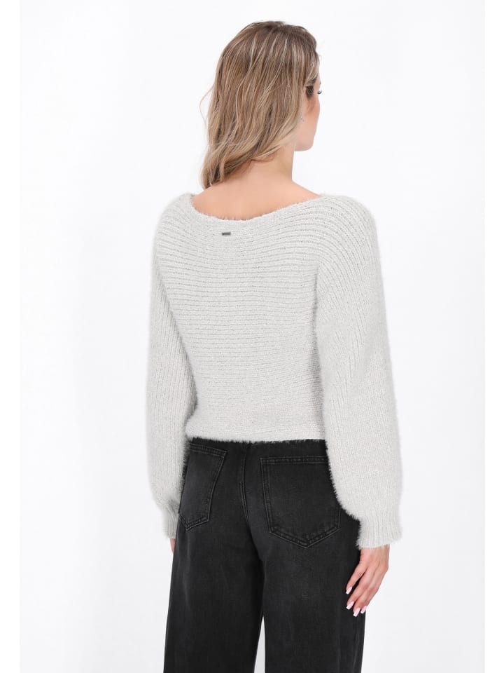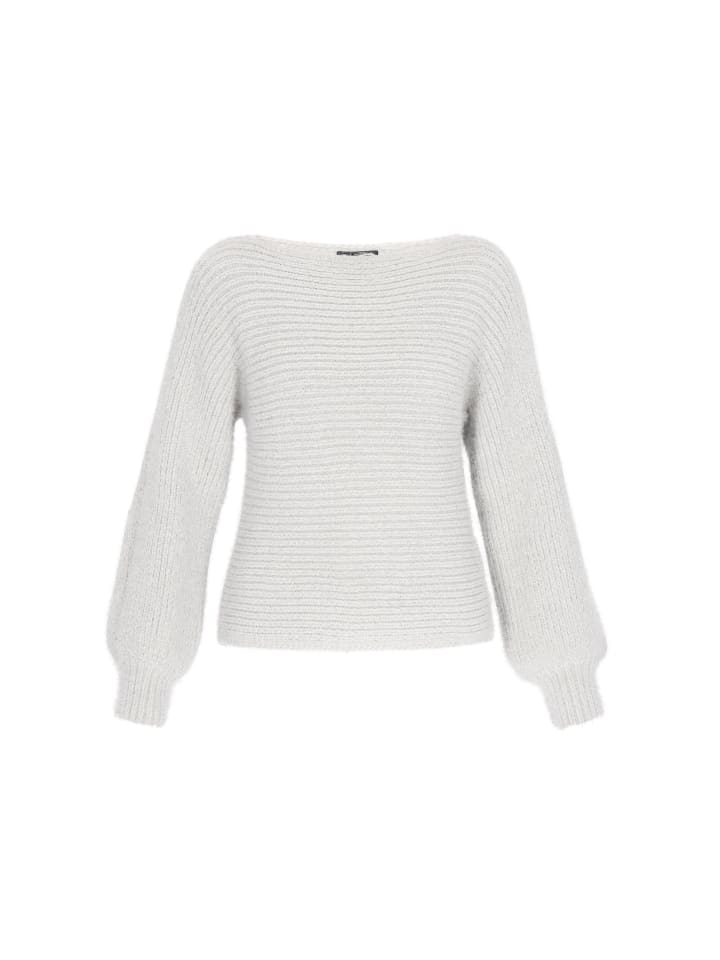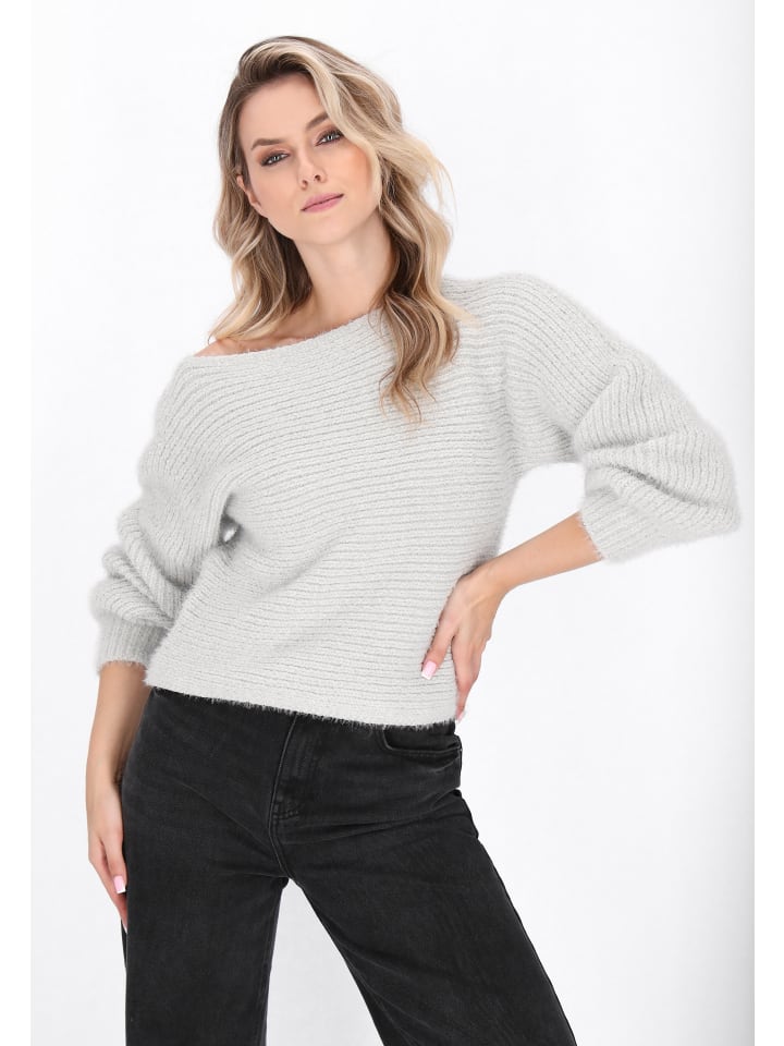- Свитер стандартного кроя с вырезом «лодочка» и длинными рукавами