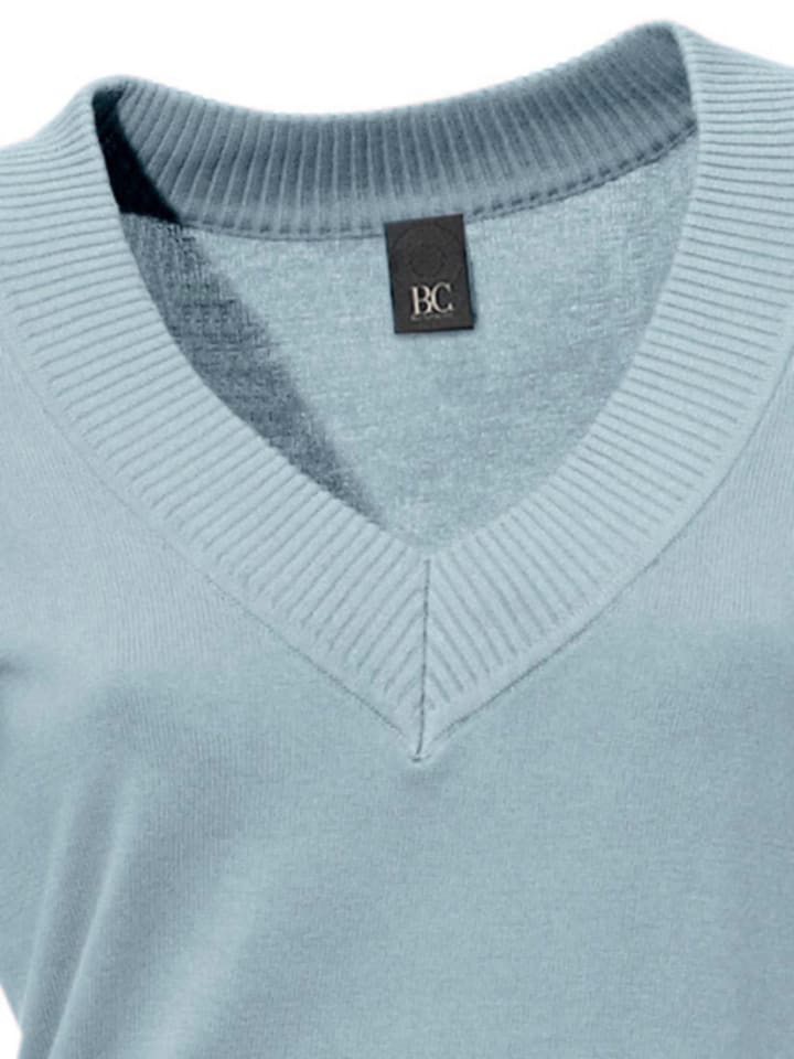 Свитер с V-образным вырезом Всегда в тренде: классический фасон с большим V-образным вырезом. Облегающий, с длинными рукавами. Поддерживает инициативу «Хлопок, сделанный в Африке».