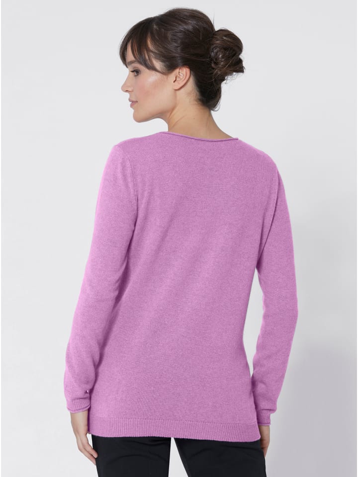 Подарите себе роскошь по выгодной цене! Этот мягкий кашемировый свитер высочайшего качества приятно приятен на ощупь и выглядит привлекательно. Круглый вырез горловины дополнен подвернутым краем, а длинные рукава украшены резинкой.