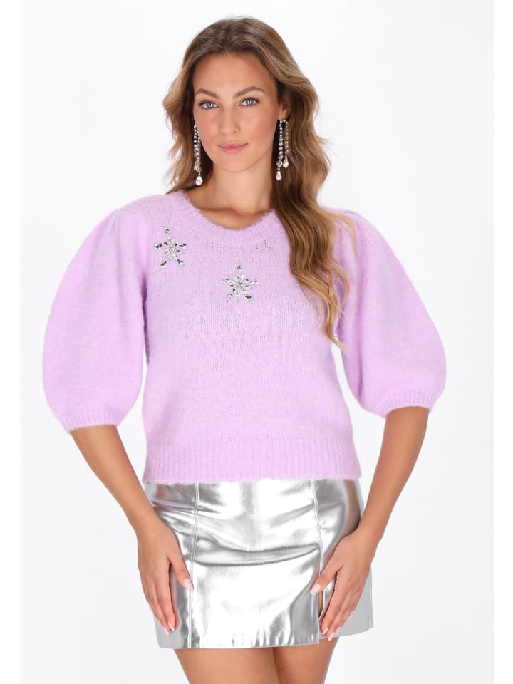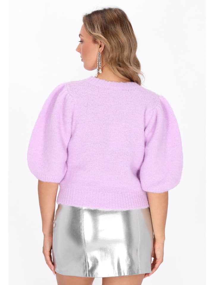 - Свитер прямого кроя с круглым вырезом и рукавами-буфами