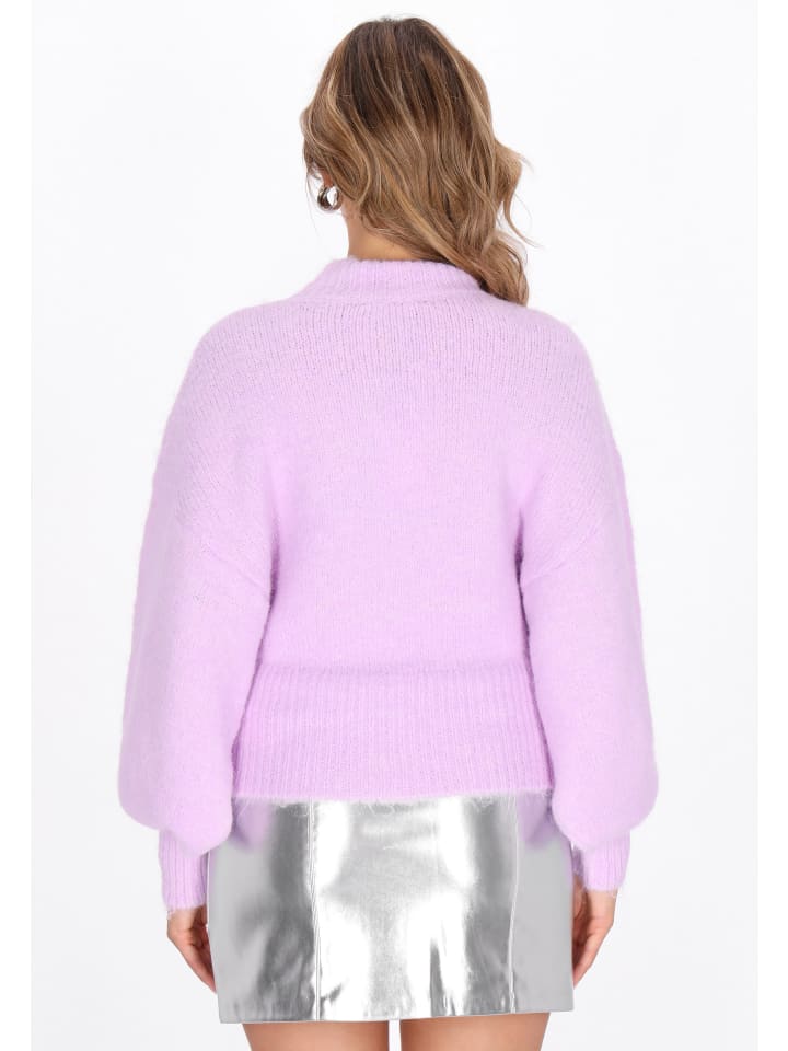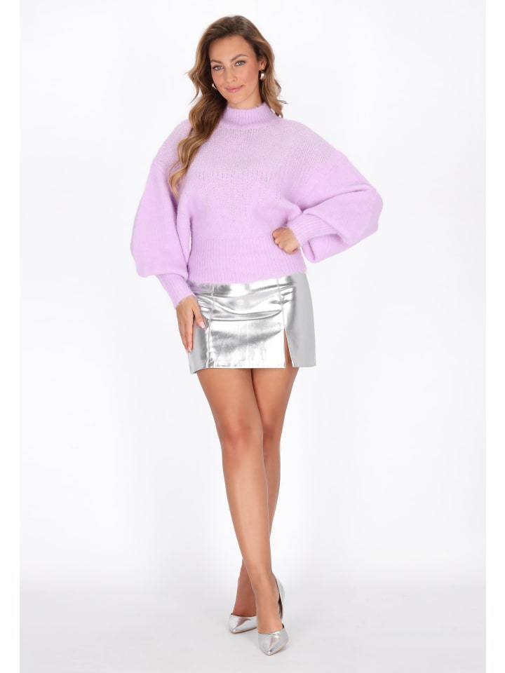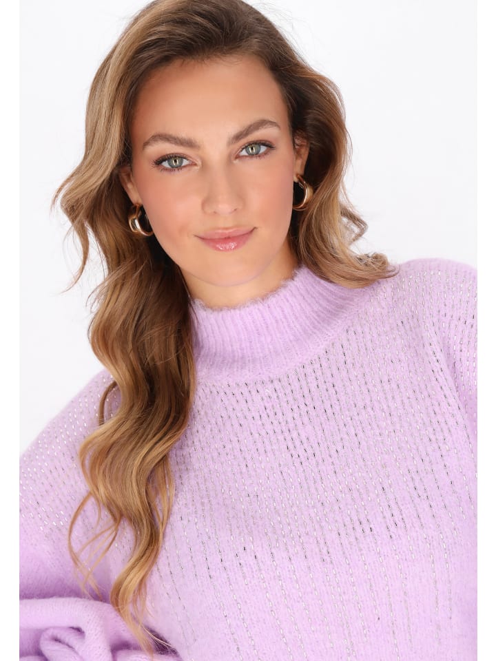 - Свободный свитер с воротником-стойкой и длинными рукавами