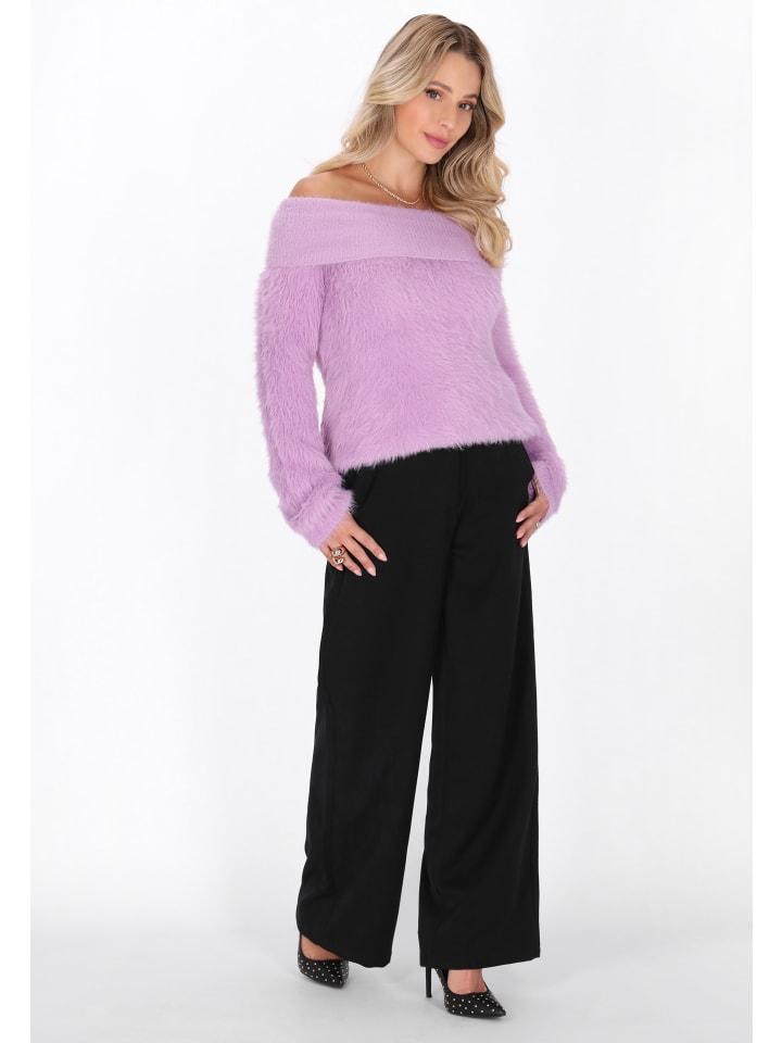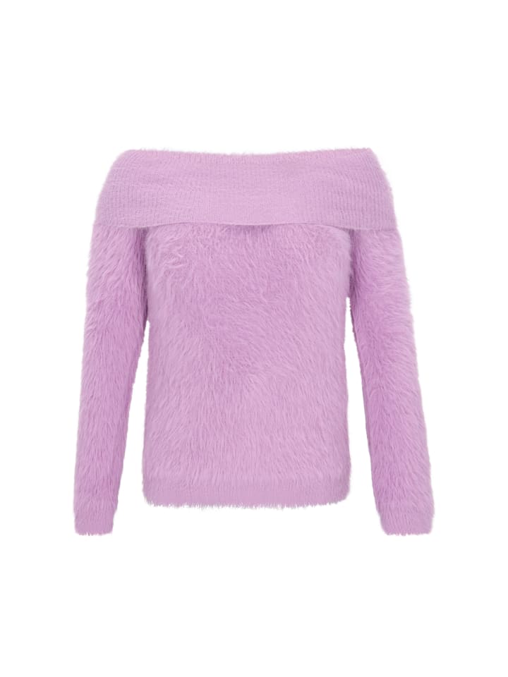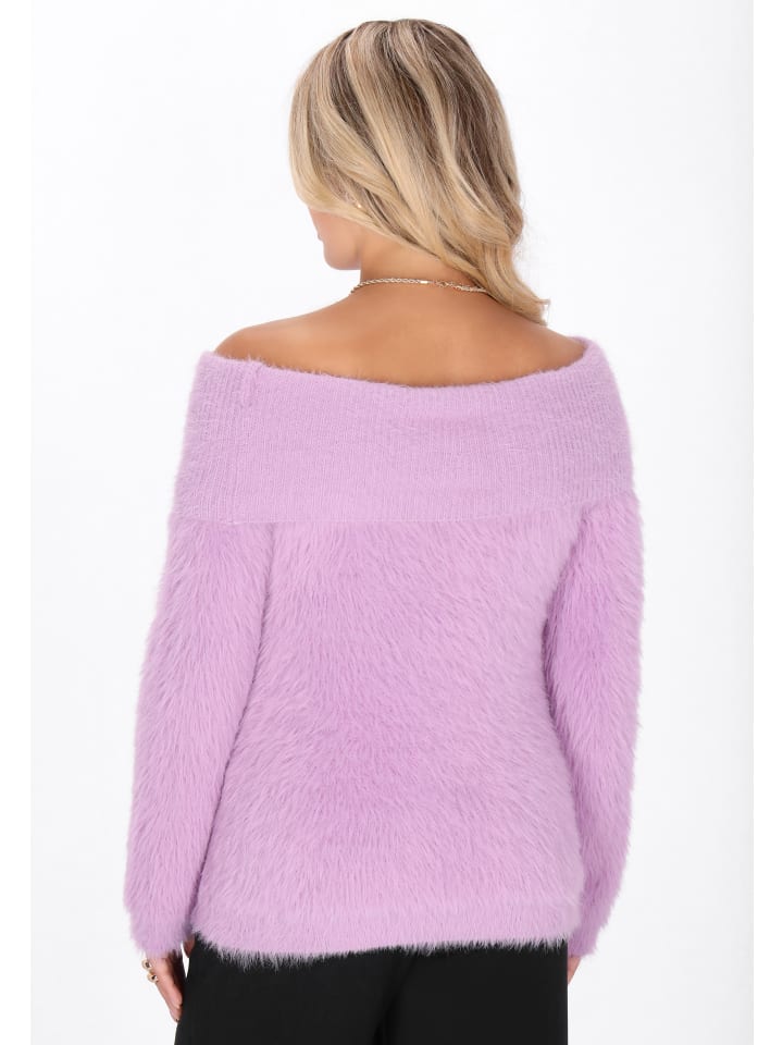 - Джемпер прямого кроя с открытыми плечами и длинными рукавами