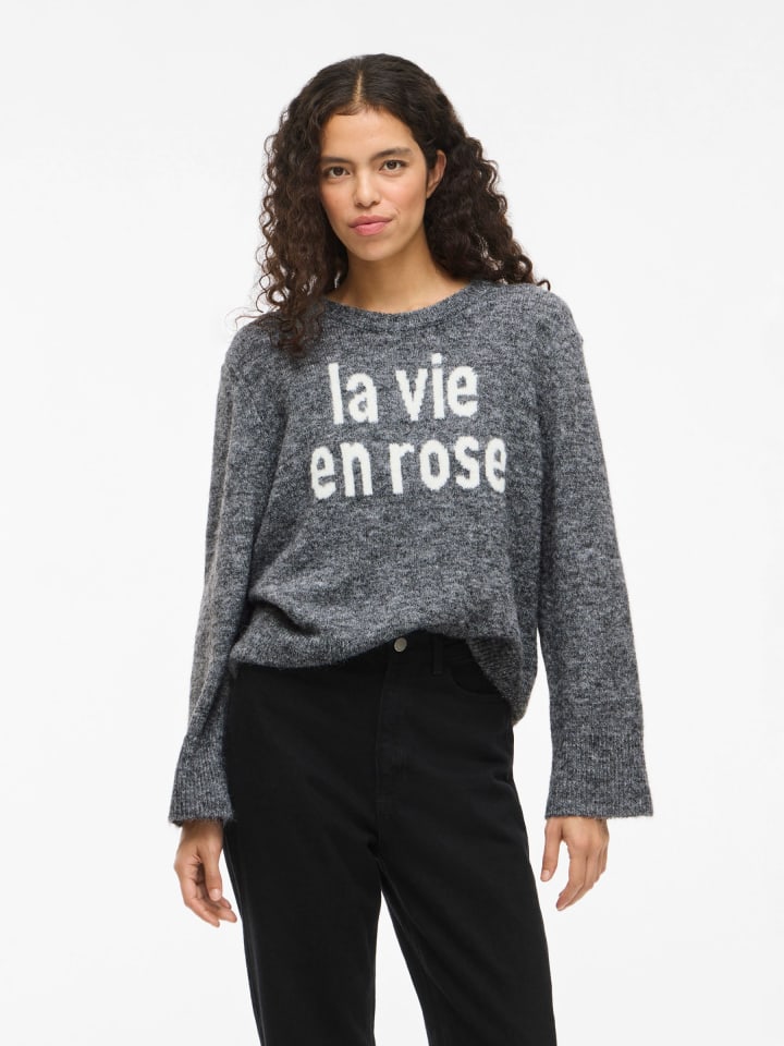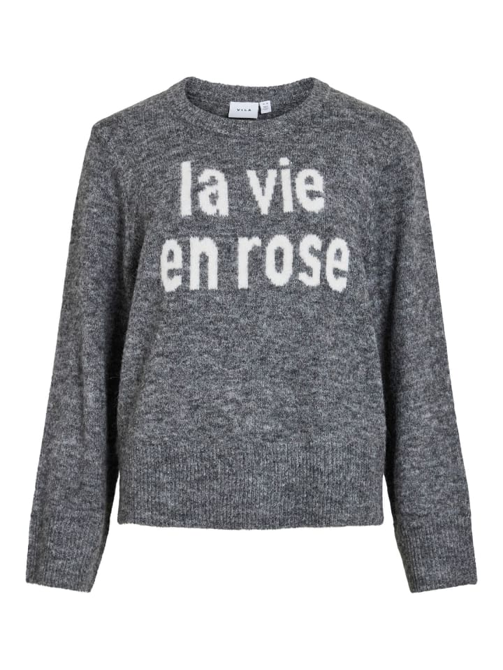 Вязаный свитер в цвете средне-серый меланж Vila