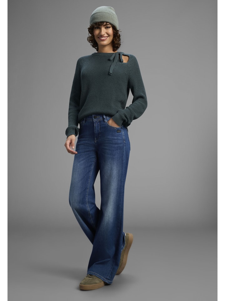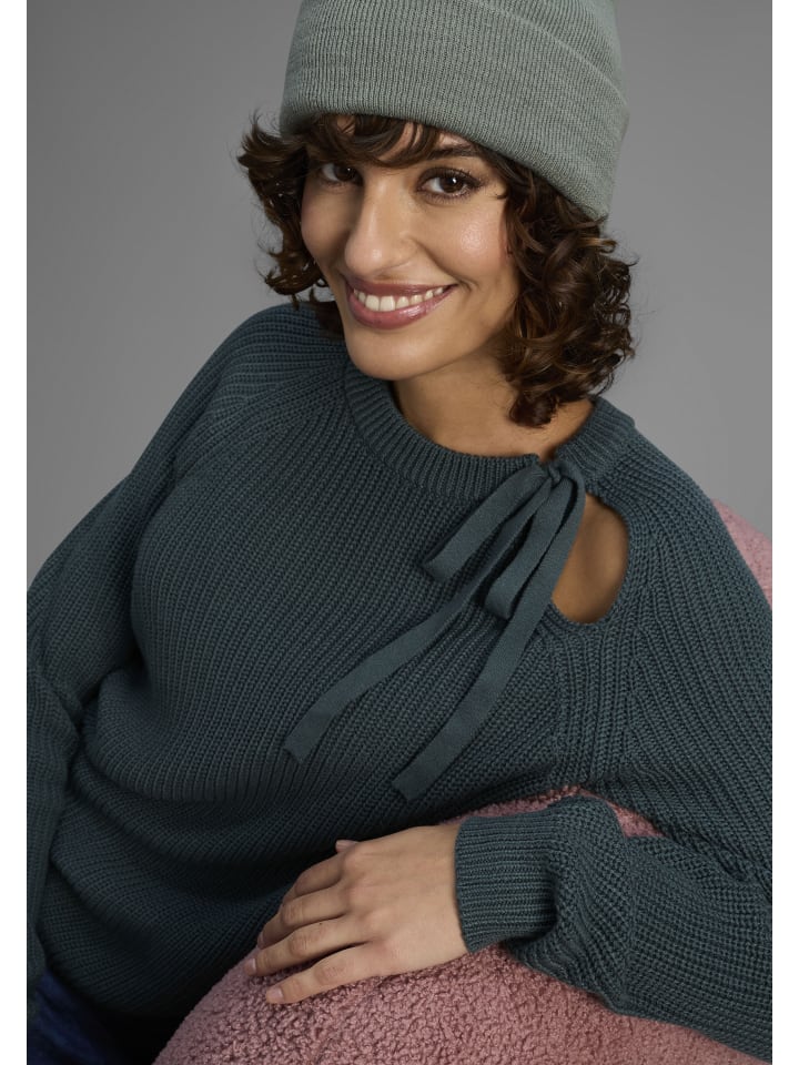 Универсальный женский трикотажный свитер от Laura Scott с романтичным бантом. Длина до бедер, выгодно подчеркивающая фигуру, и длинные рукава. Игривая лента завершает образ. Трикотаж обеспечивает исключительный комфорт и тепло.