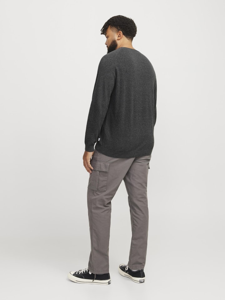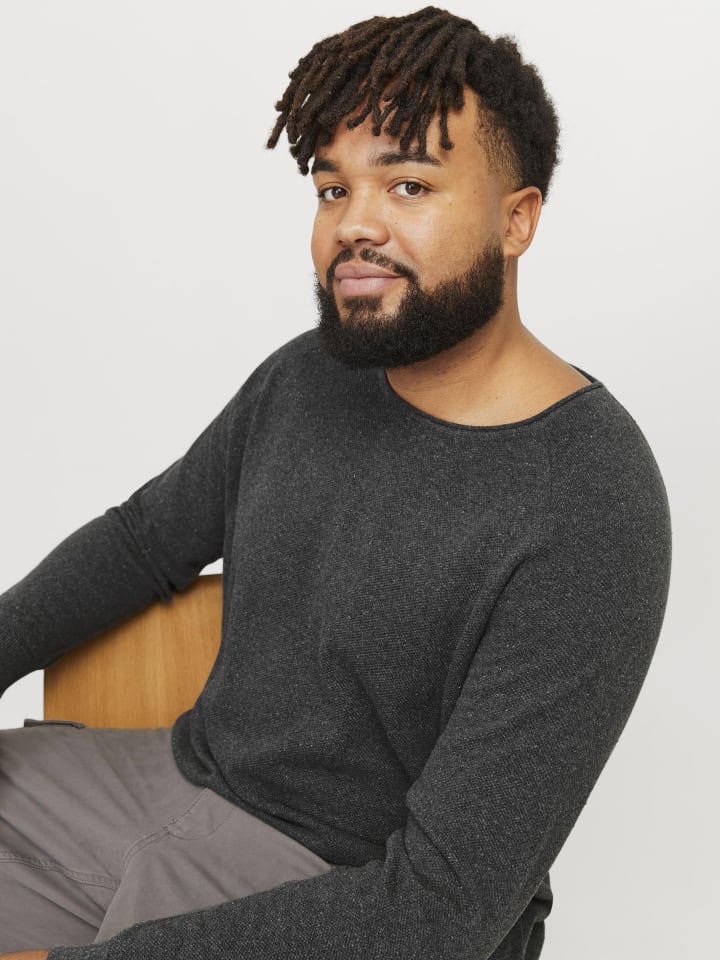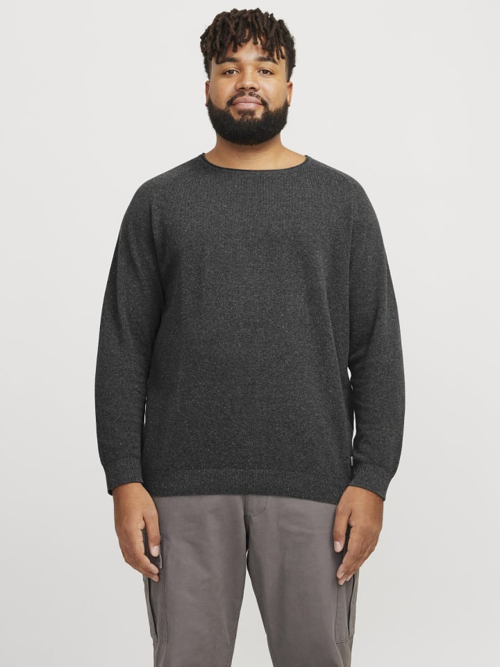 Темно-серый меланжевый вязаный свитер JACK & JONES PLUS