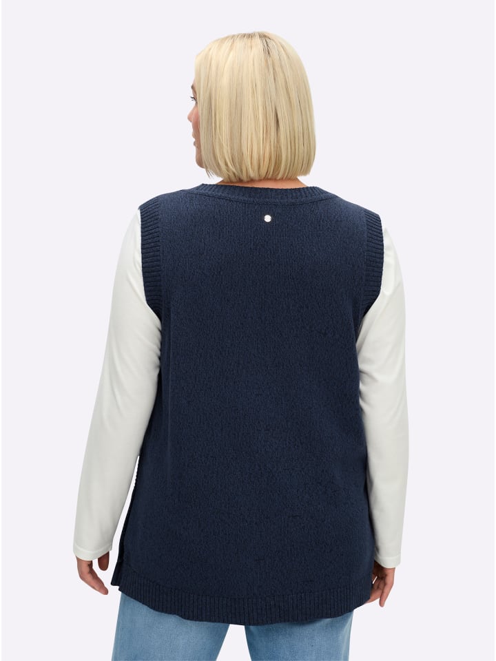 Жилет-свитер темно-синего цвета в крапинку sheego
