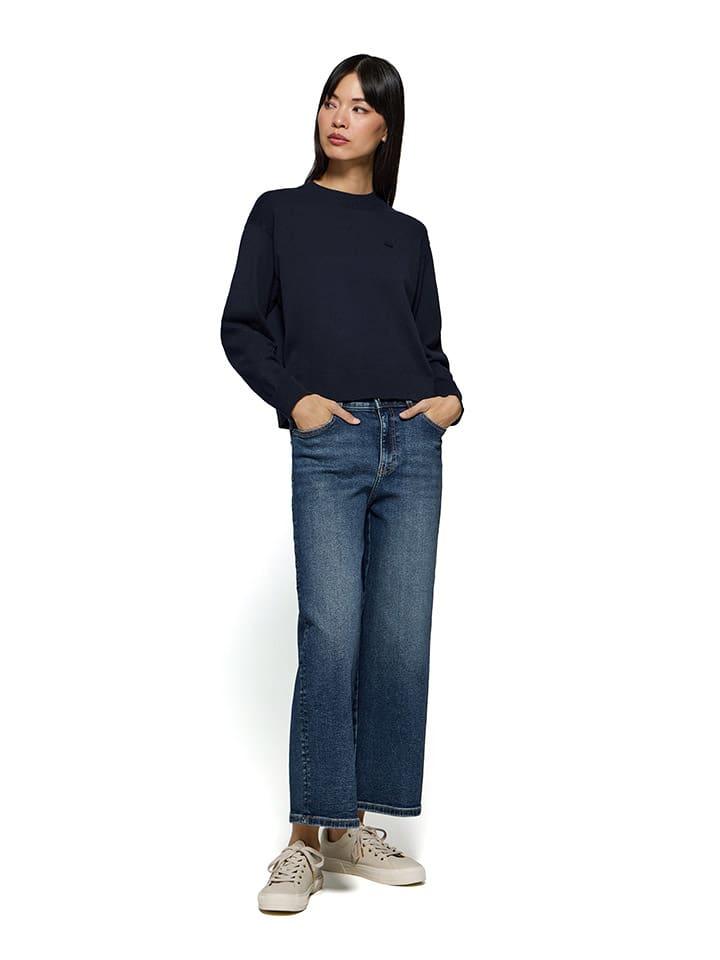 - Ребристая вязка: Вырез горловины, манжеты, низ