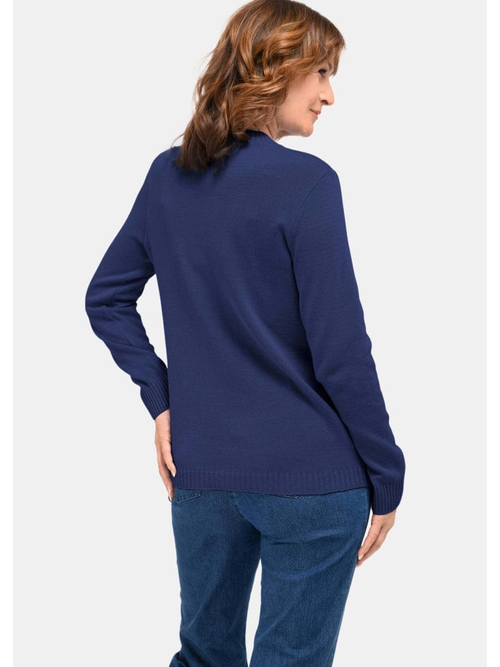 Свитер, который впечатляет своими чистыми линиями и неприхотливым уходом. Легкий блеск, привлекательный узор вязки косами и воротник-стойка подчеркивают его вневременной прекрасный стиль. Высокое содержание хлопка обеспечивает превосходное качество. Ребристые манжеты и длинные рукава обеспечивают удобную посадку и создают прекрасный образ. Длина прибл. 67 см для размера 46, прибл. 63 см для размера 23.