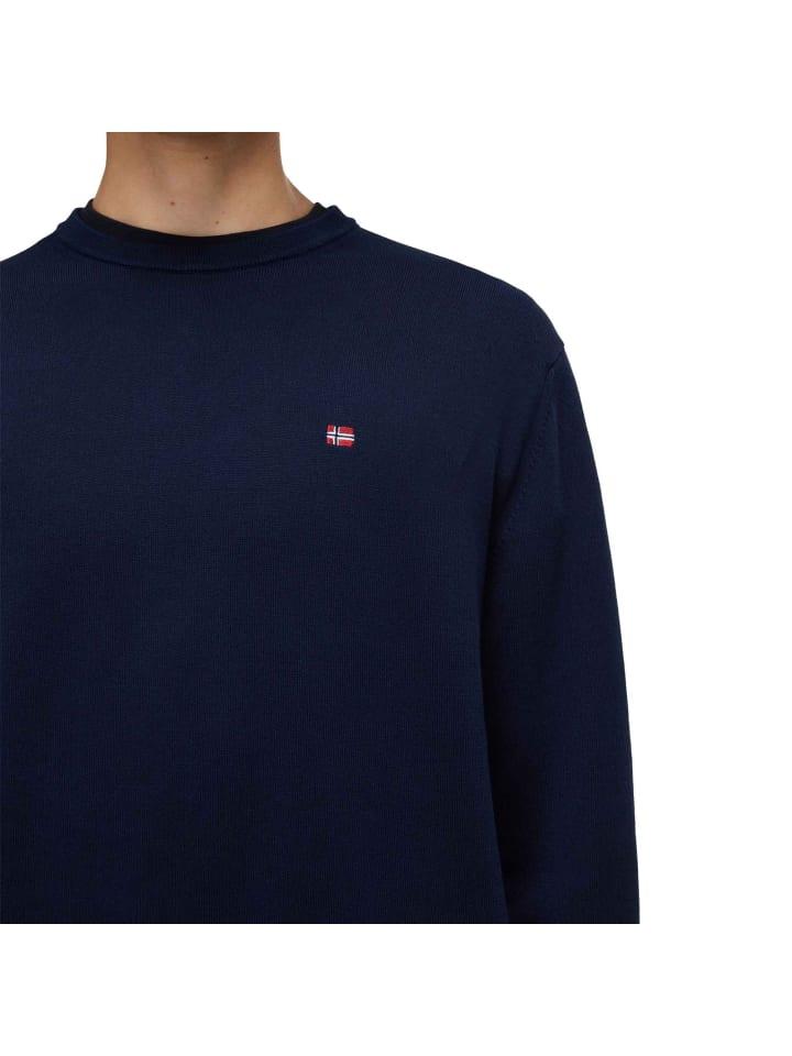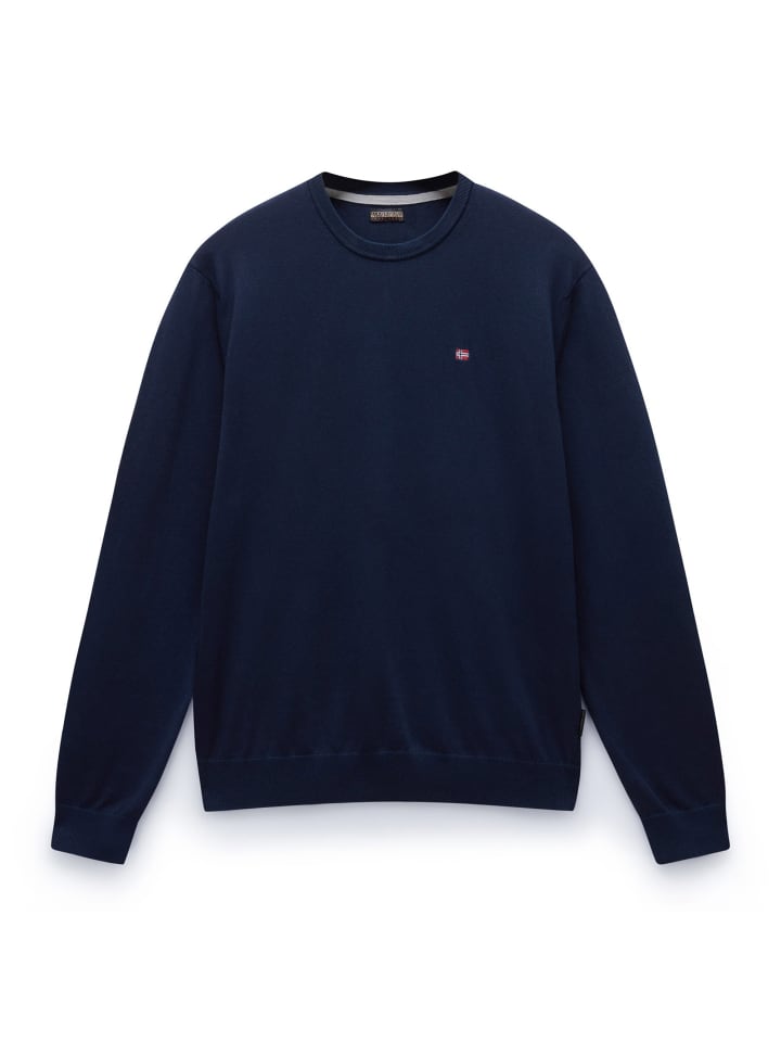 Мужской вязаный свитер NAPAPIJRI. Однотонный базовый свитер с небольшим логотипом на груди и круглым вырезом. Классический крой.