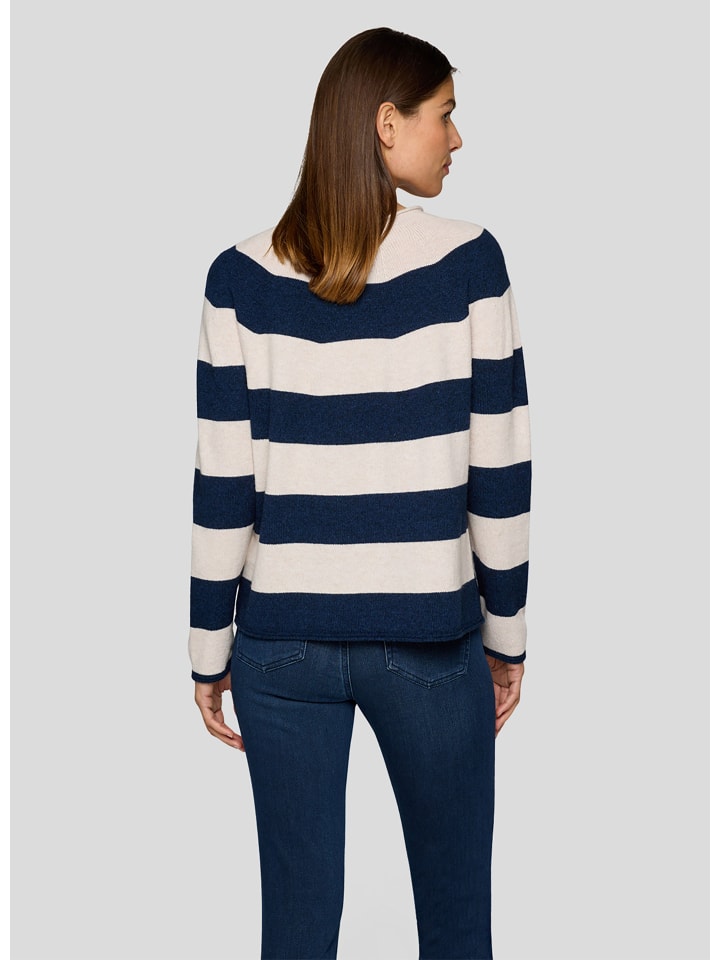 - Полосатый трикотажный свитер с круглым вырезом и содержанием шерсти