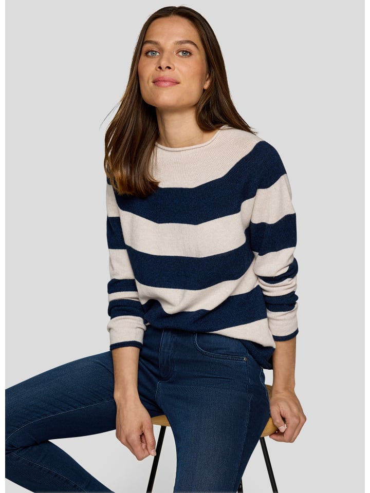Этот трикотажный свитер сочетает в себе классические полоски и современный дизайн. Мягкий материал с высоким содержанием шерсти обеспечивает приятное тепло, а круглый вырез горловины и изящные ребристые манжеты и подол изящно дополняют образ. Крупные блочные полосы добавляют модные акценты и могут комбинироваться по-разному - как с джинсами, так и с более элегантными брюками. Двухцветная фактурная вязка. Круглый вырез горловины с ребристым краем. Ребристые манжеты и подол.
