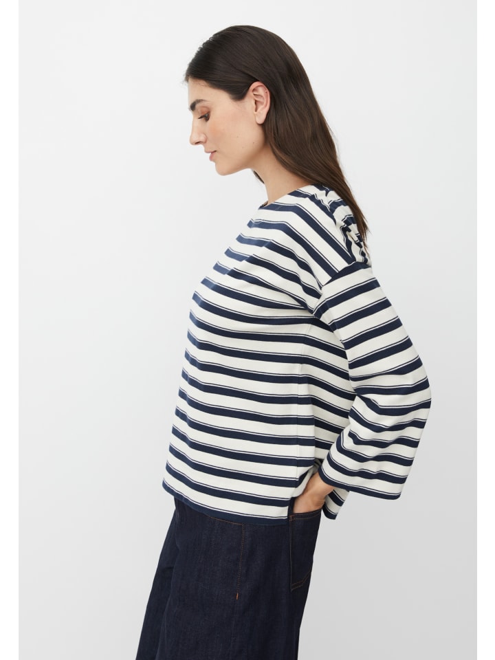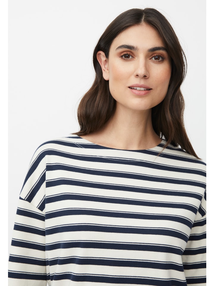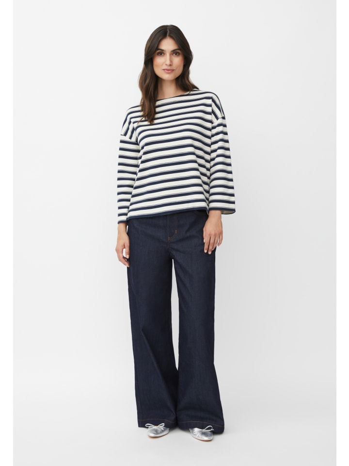 Морские полосы никогда не выходят из моды, и этот топ - яркое тому подтверждение. Мягкий трикотаж имеет классический прямой крой с широким вырезом, спущенной линией плеча и рукавами три четверти. В результате получается одновременно женственный и непринужденный топ. Сочетайте его с черными брюками, любимыми джинсами или легкой юбкой с волнистым кроем. Он сочетается с чем угодно, и даже с чем-то большим. Большемерит, заказывайте на размер меньше.