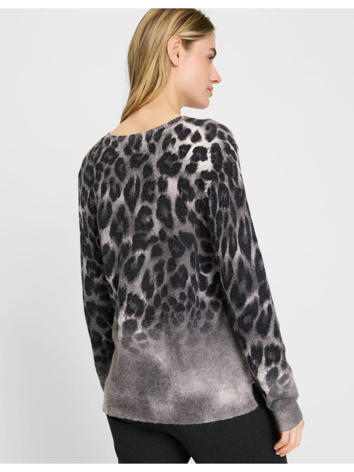 Выразительный образ с модным акцентом: этот свитер украшен леопардовым принтом с градиентом. Женственный V-образный вырез и едва заметные боковые разрезы по подолу придают ему современную легкость. Прямой крой Olsen «Henny» создает привлекательный силуэт, а мягкая, струящаяся вискозная смесь обеспечивает комфорт. Идеально сочетается с облегающими брюками или юбками, создавая стильный и индивидуальный образ. Бонус: эта модель изготовлена из вискозы LENZING ECOVERO, полученной из контролируемых источников древесины. LENZING и ECOVERO являются товарными знаками Lenzing AG. Длина около 62 см.