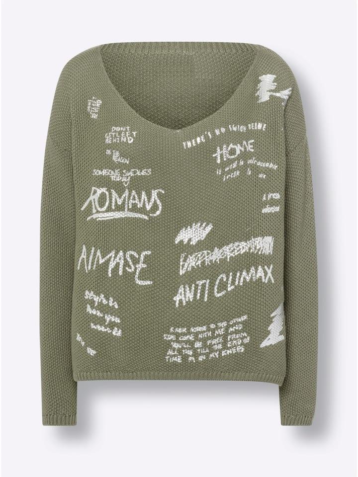 Супермягкий трикотажный свитер из чистого хлопка с мерцающим фольгированным принтом и надписью. V-образный вырез, можно носить с открытыми плечами для создания непринужденного образа. С длинными рукавами и ребристым подолом. Поддерживает инициативу «Сделано в Африке» (Cat Made in Africa).
