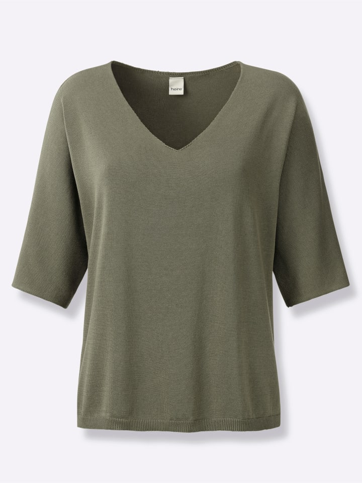 Свитер из мягкой, струящейся тонкой вязки с вискозой качества ECOVERO от Lenzing. С глубоким V-образным вырезом, рукавами «летучая мышь» длиной 3/4 и узкими манжетами в рубчик.