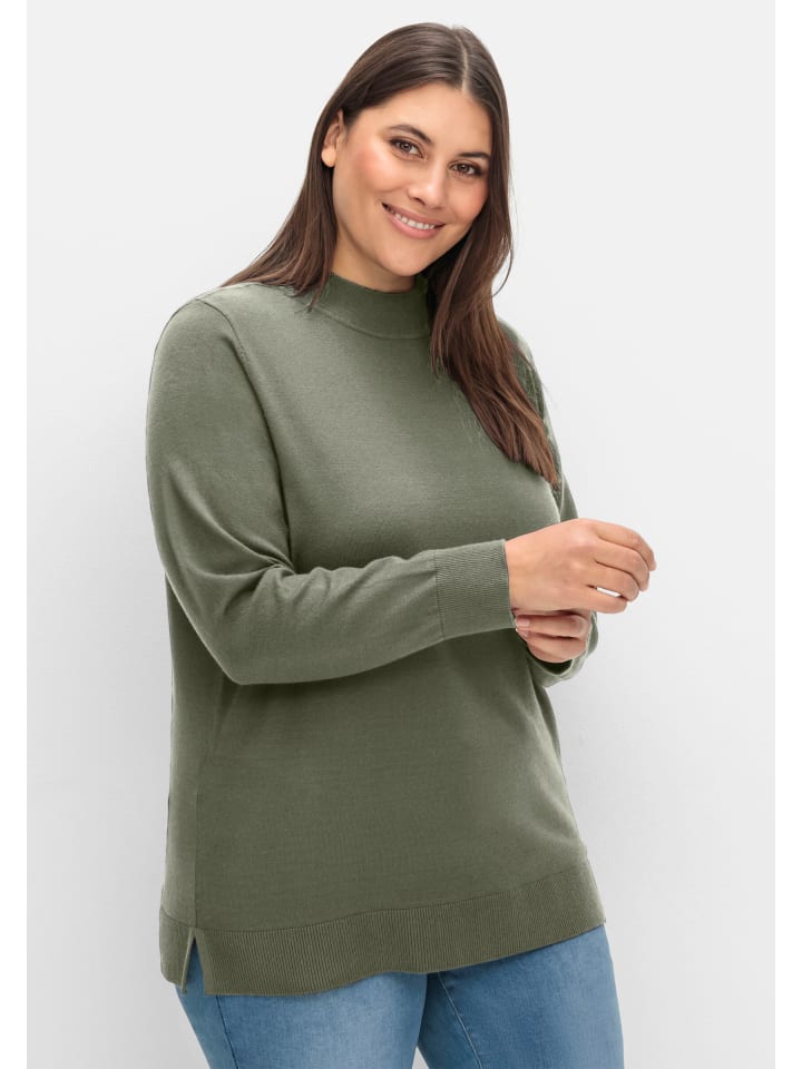 Тонкий вязаный свитер цвета хаки sheego 7 327₽