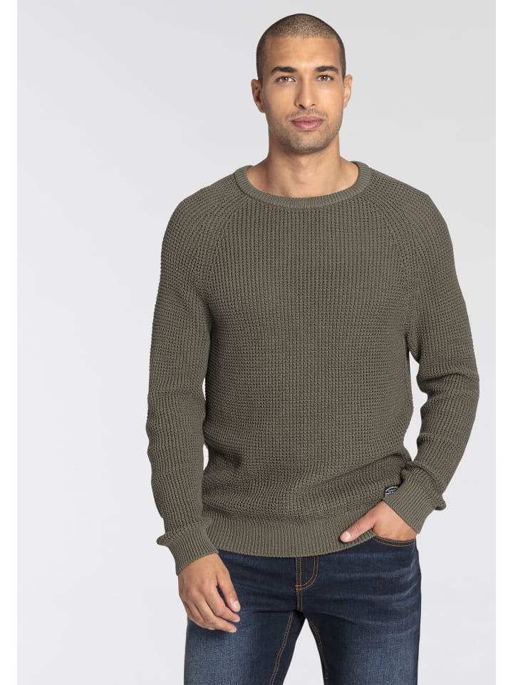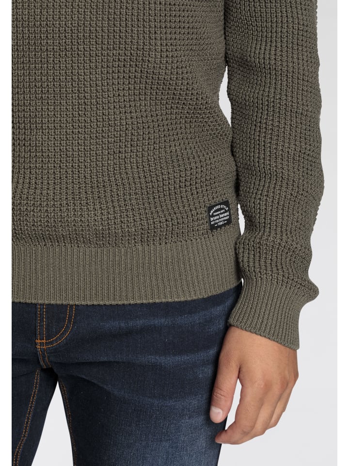 Свитер с круглым вырезом цвета хаки Bruno Banani
