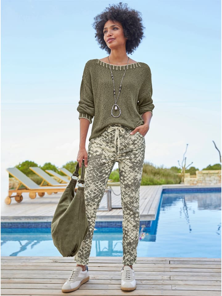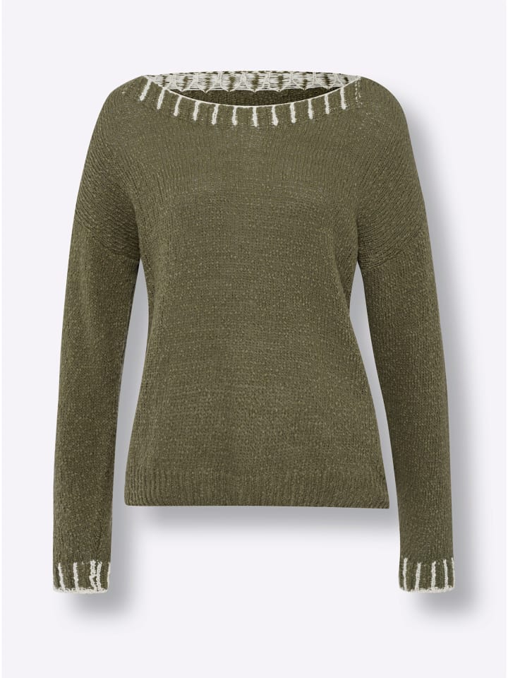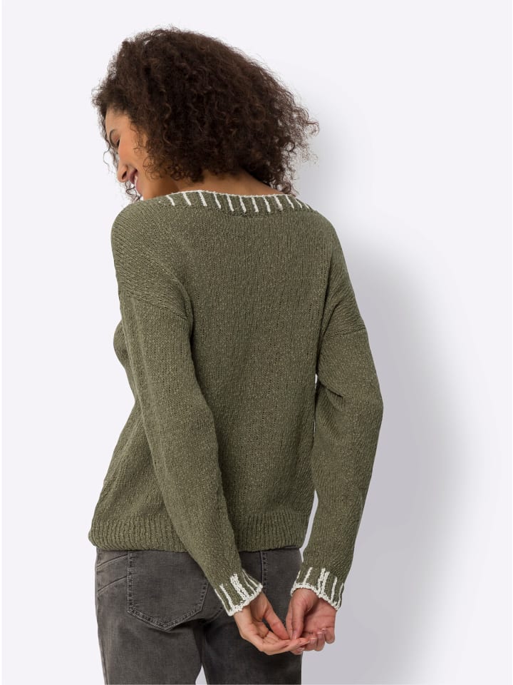 Свитер с круглым вырезом цвета хаки-шампань Heine