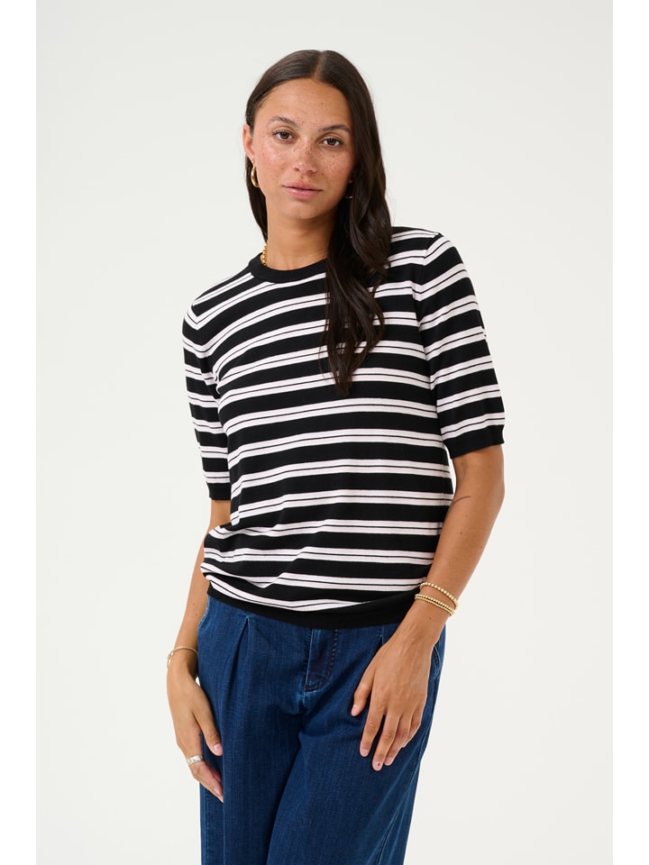 - Ребристая вязка: Вырез горловины, манжеты, низ