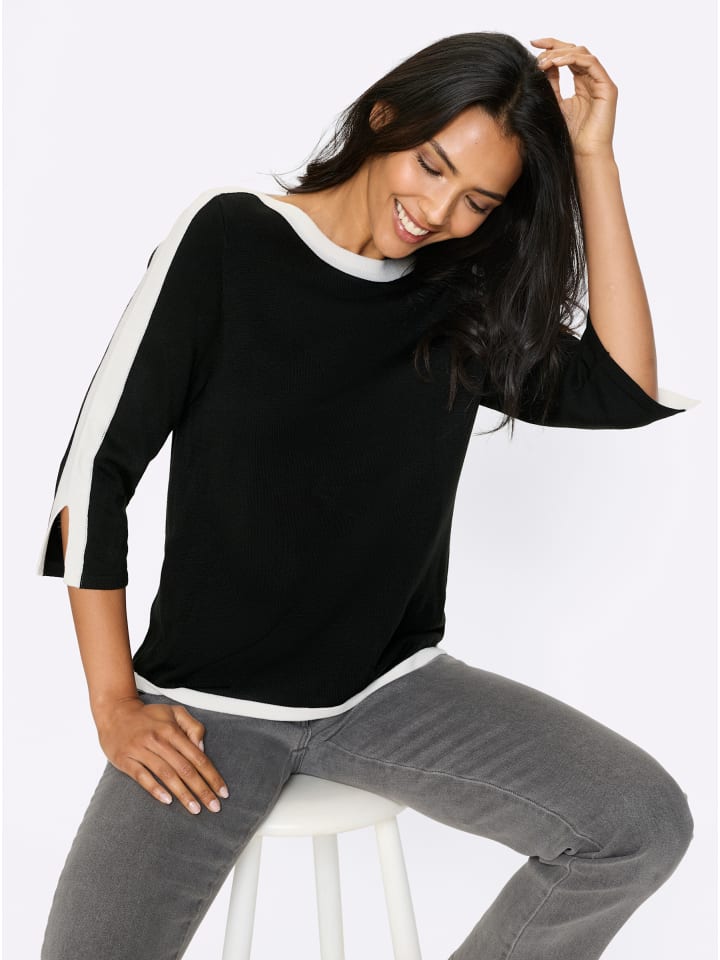 Свитер с рукавами 3/4 в черно-белом цвете Sieh an!