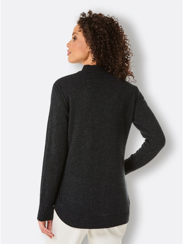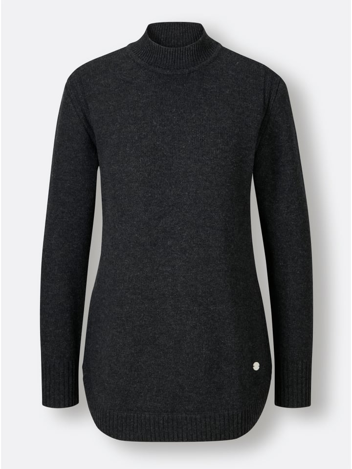Свитер из мериносовой шерсти и кашемира. Побалуйте себя исключительным качеством. Удивительно мягкая и теплая пряжа меланжевого качества. Длинный, идеально облегающий. Закругленный подол. Ребристые боковые вставки.