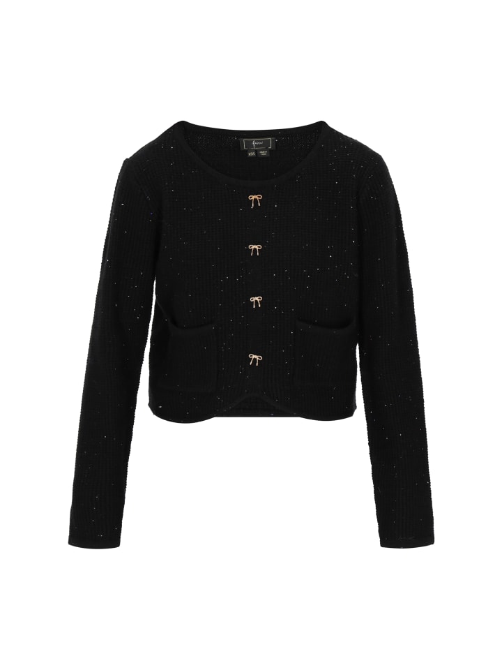 Этот кардиган стандартного кроя сочетает в себе комфорт и утонченный романтический стиль. Он связан из мягкой вафельной вязки с тонким металлическим волокном, которое придает ему сдержанный блеск. У него классический круглый вырез горловины и длинные рукава, а практичные карманы и декоративная застежка на пуговицы добавляют функциональности. Гладкий, однотонный узор делает кардиган идеальным для повседневного, модного образа. Идеально подходит для ценителей комфорта и элегантности. Этот кардиган входит в коллекцию Fashion Look.